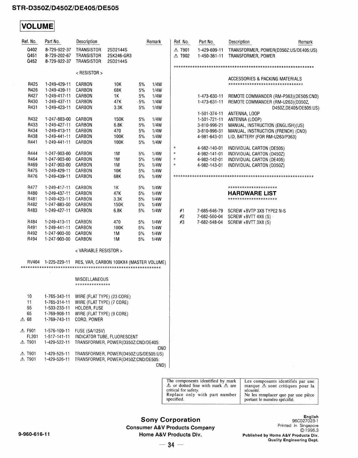STR-D3502Z/D450Z/DE405/DE505