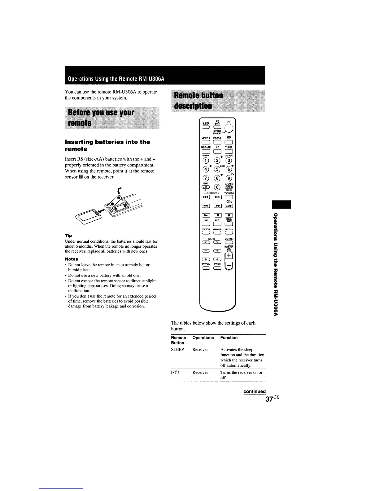 Sony STR-DE495 - Remote Control Operations