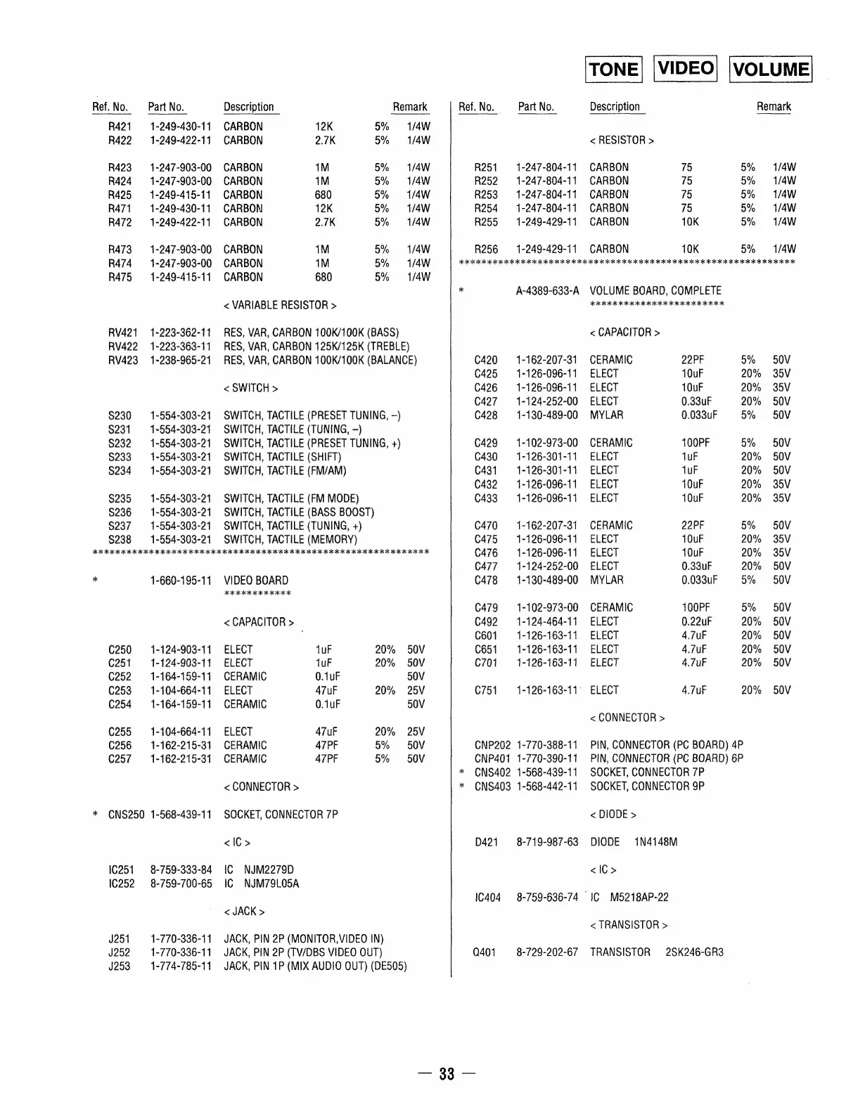 Sony STR-DE505 - Tone, Video, and Volume Board Components