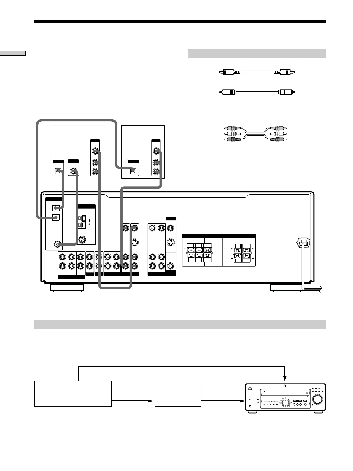When making connections as shown above, be sure to set INPUT MODE (8 on page 23) manually. The receiver may not operate correctly