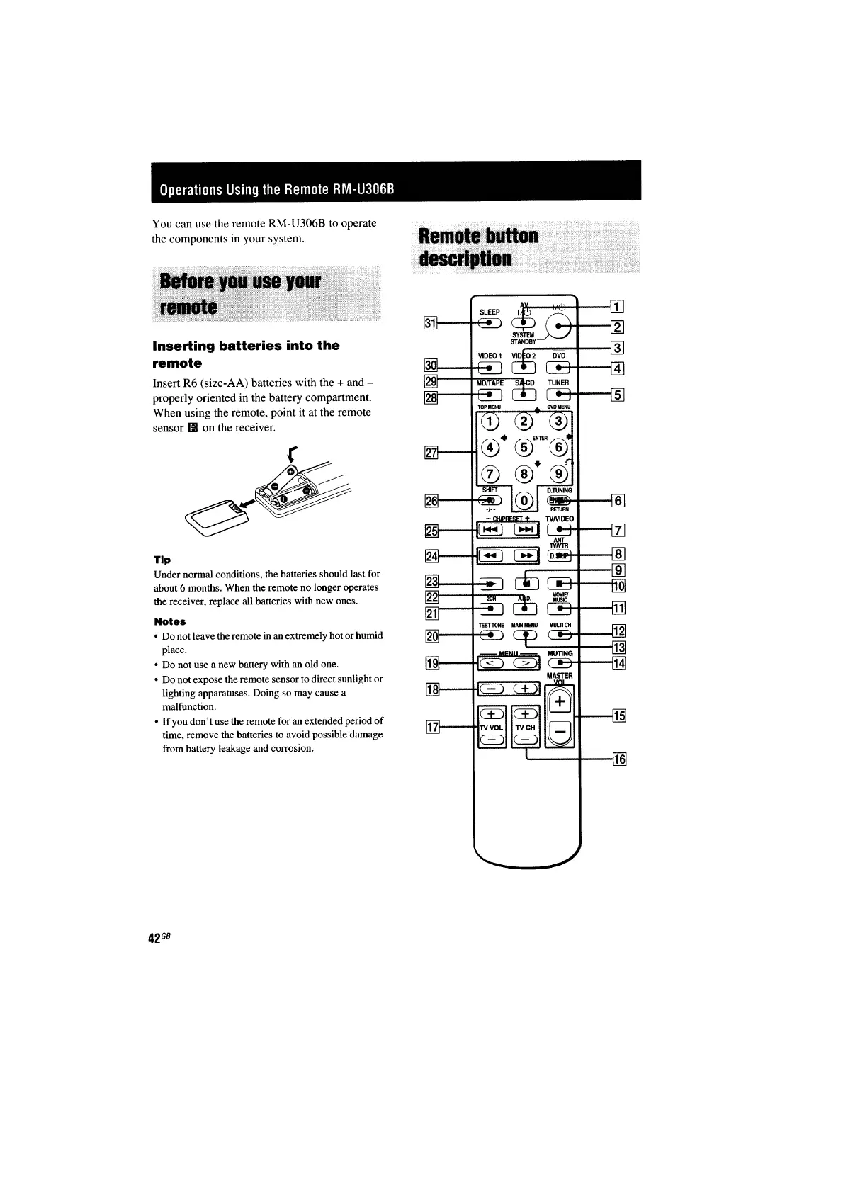 Sony STR-DE597 - Remote Control Operations
