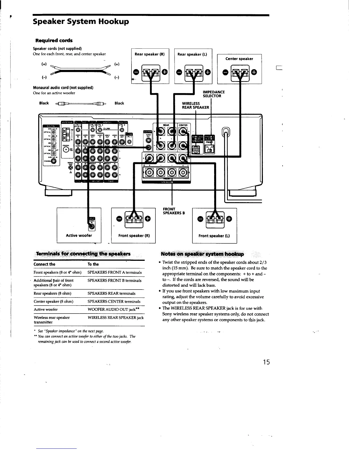 Sony STR-DE825 - Speaker System Hookup
