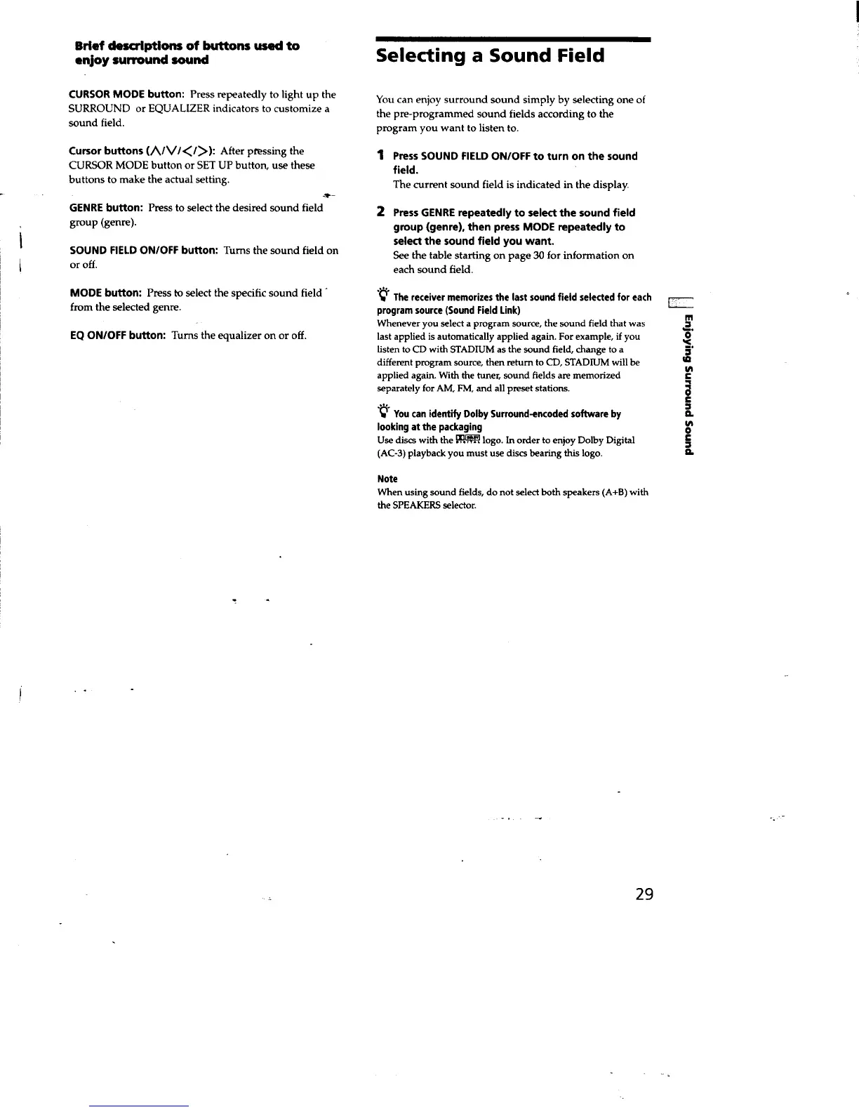 Sony STR-DE825 - Selecting a Sound Field