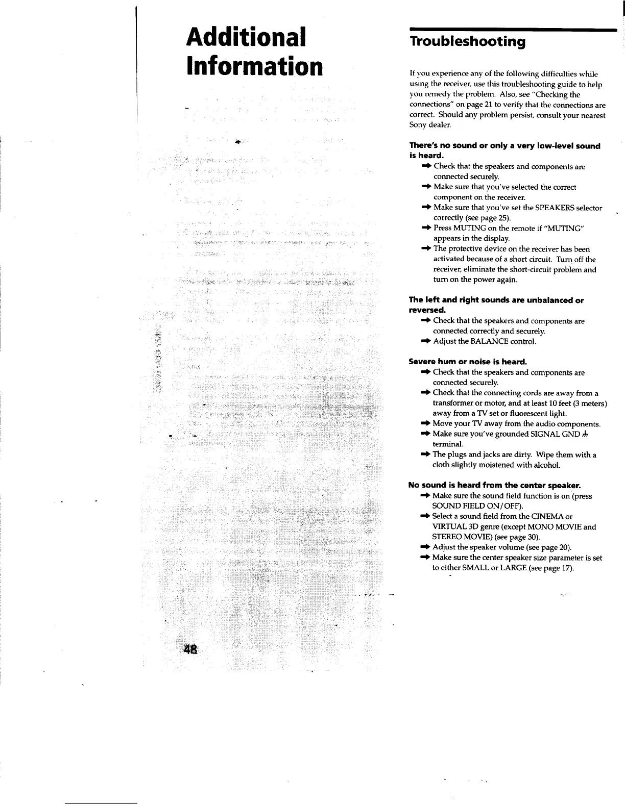 Sony STR-DE825 - Additional Information; Troubleshooting