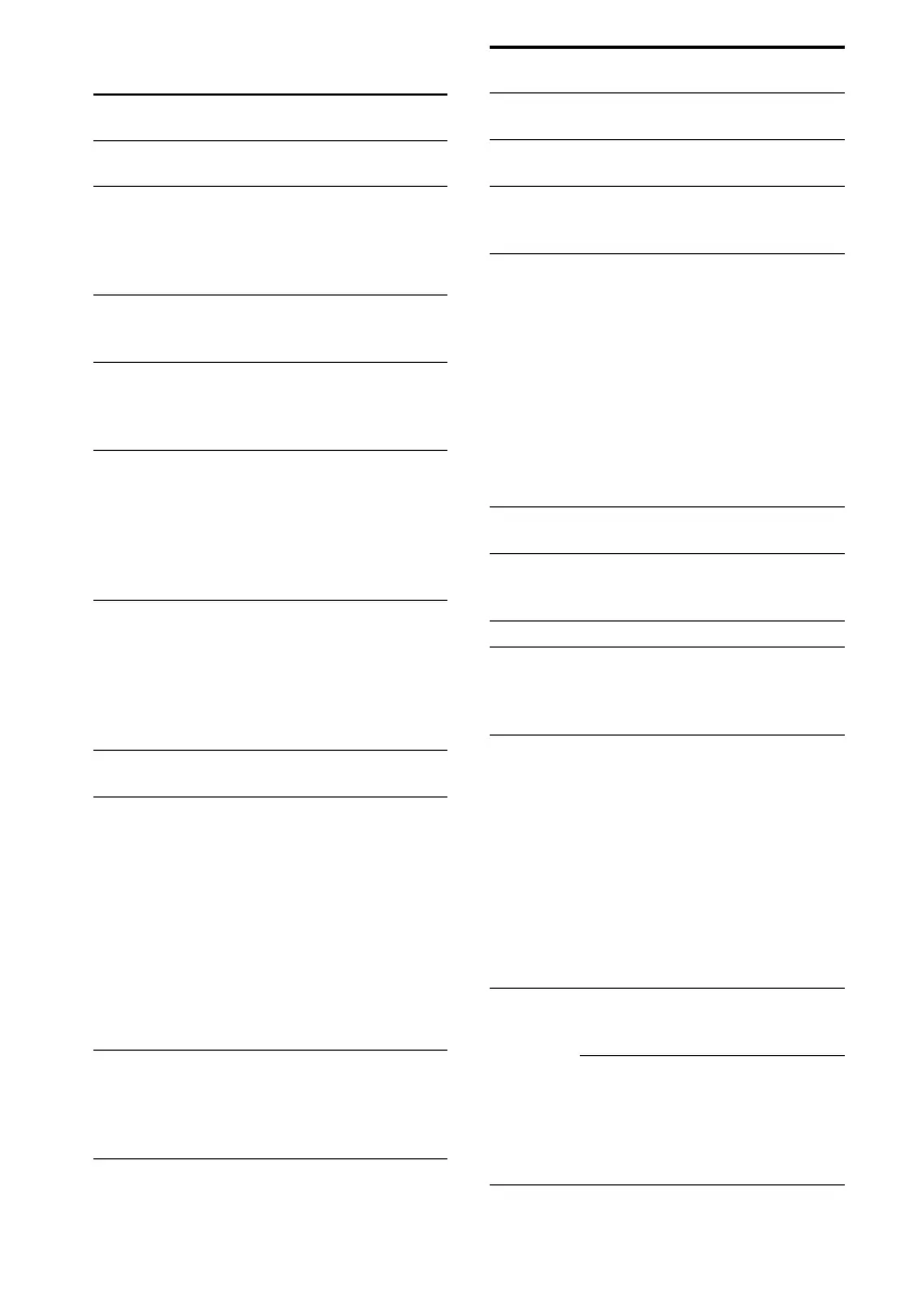 The tables below show the settings of each