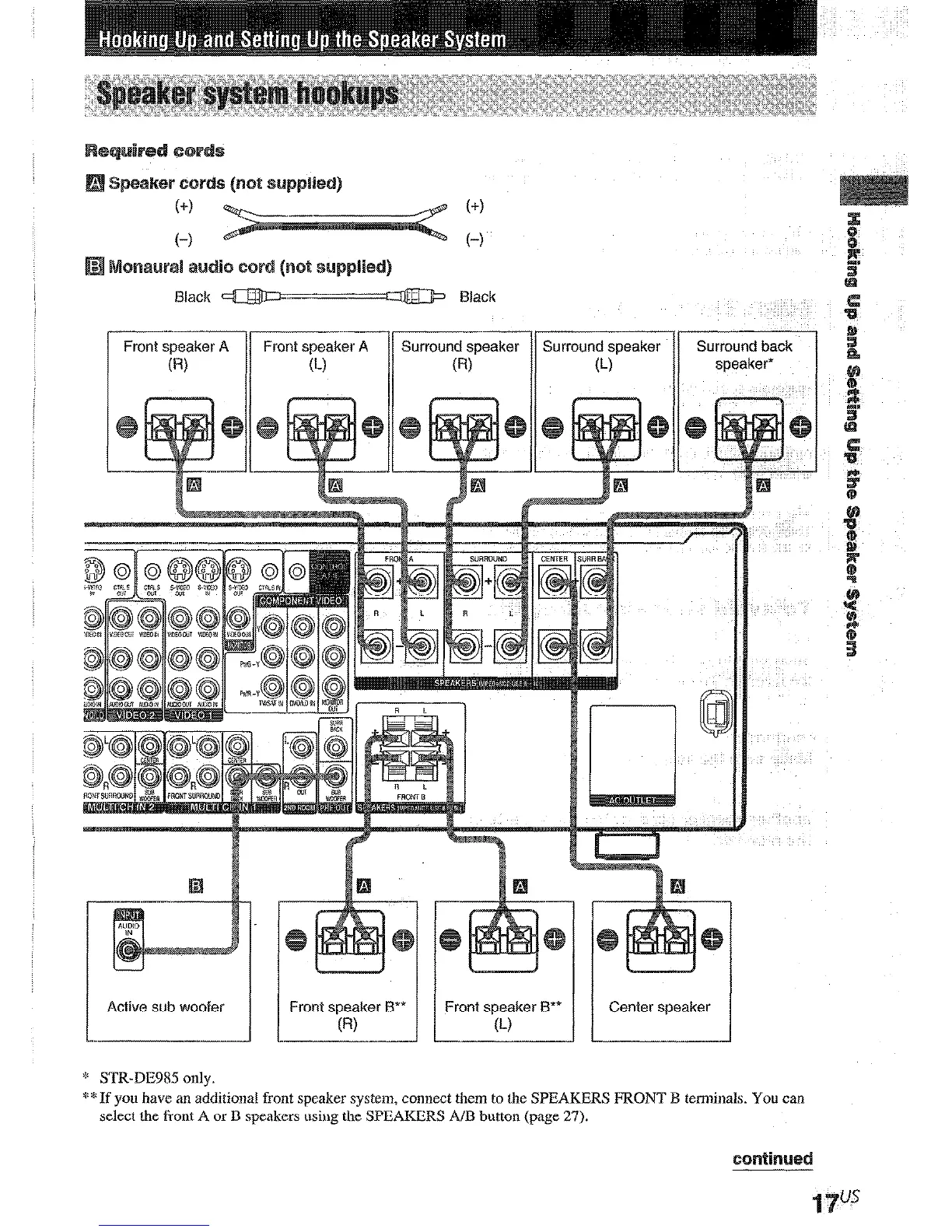 *‘*If you have an additional front speaker system, connect them to the SPEAKERS FRONT B terminals. You can