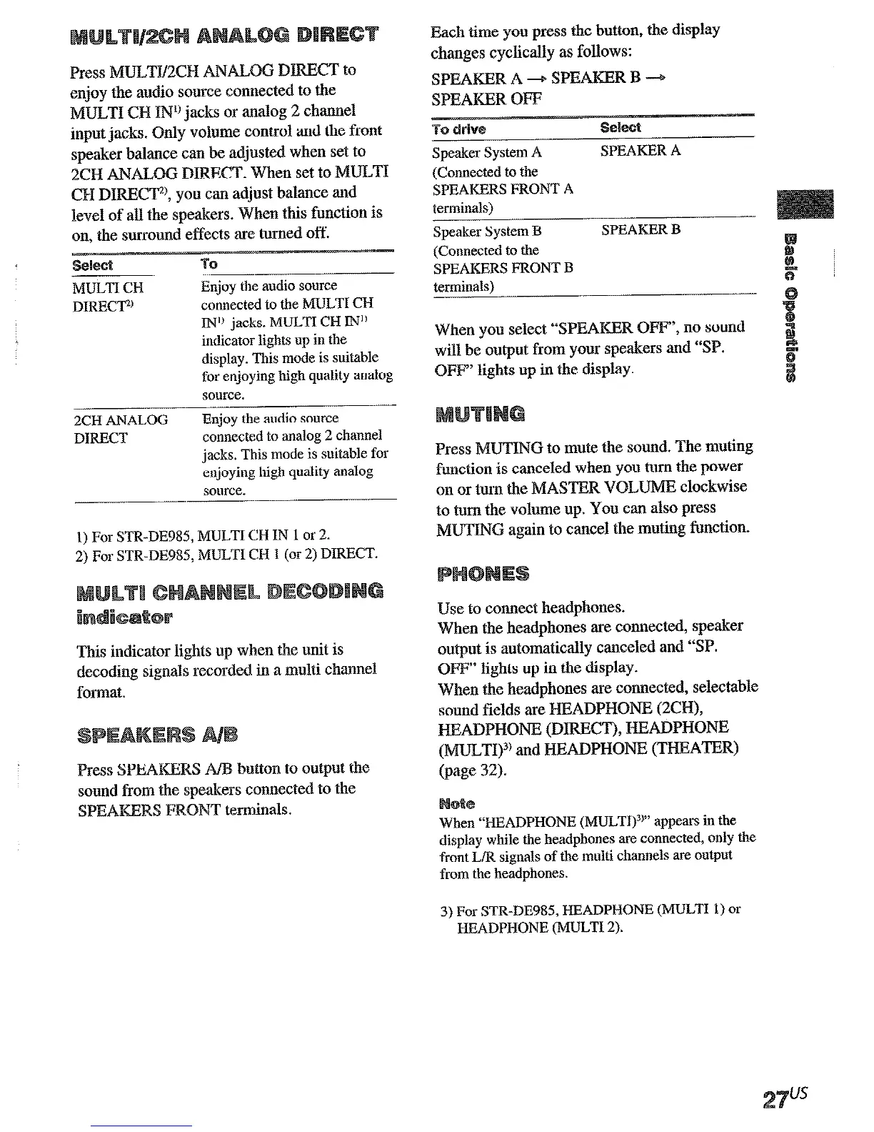 3) For STR-DE985, HEADPHONE (MULTI 1) or