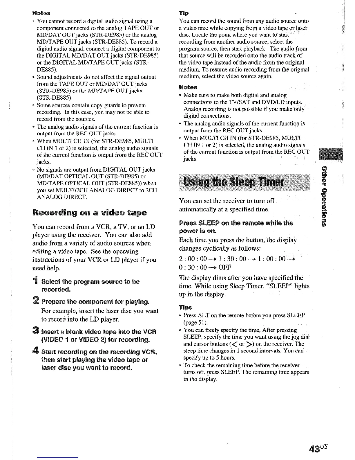 MD/TAPE OUT jacks (STR-DE885). To record a