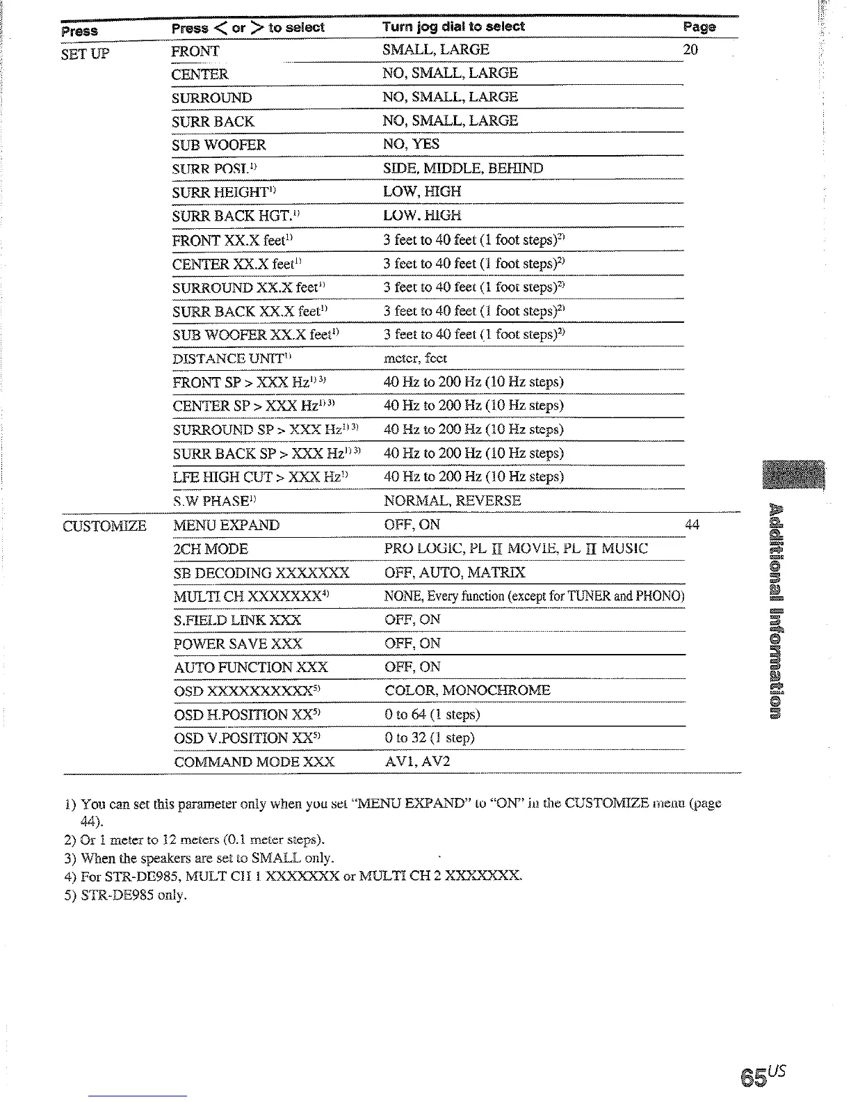 1) You can set this parameter only when you set “‘MENU EXPAND” to “ON” in the CUSTOMIZE meno (page