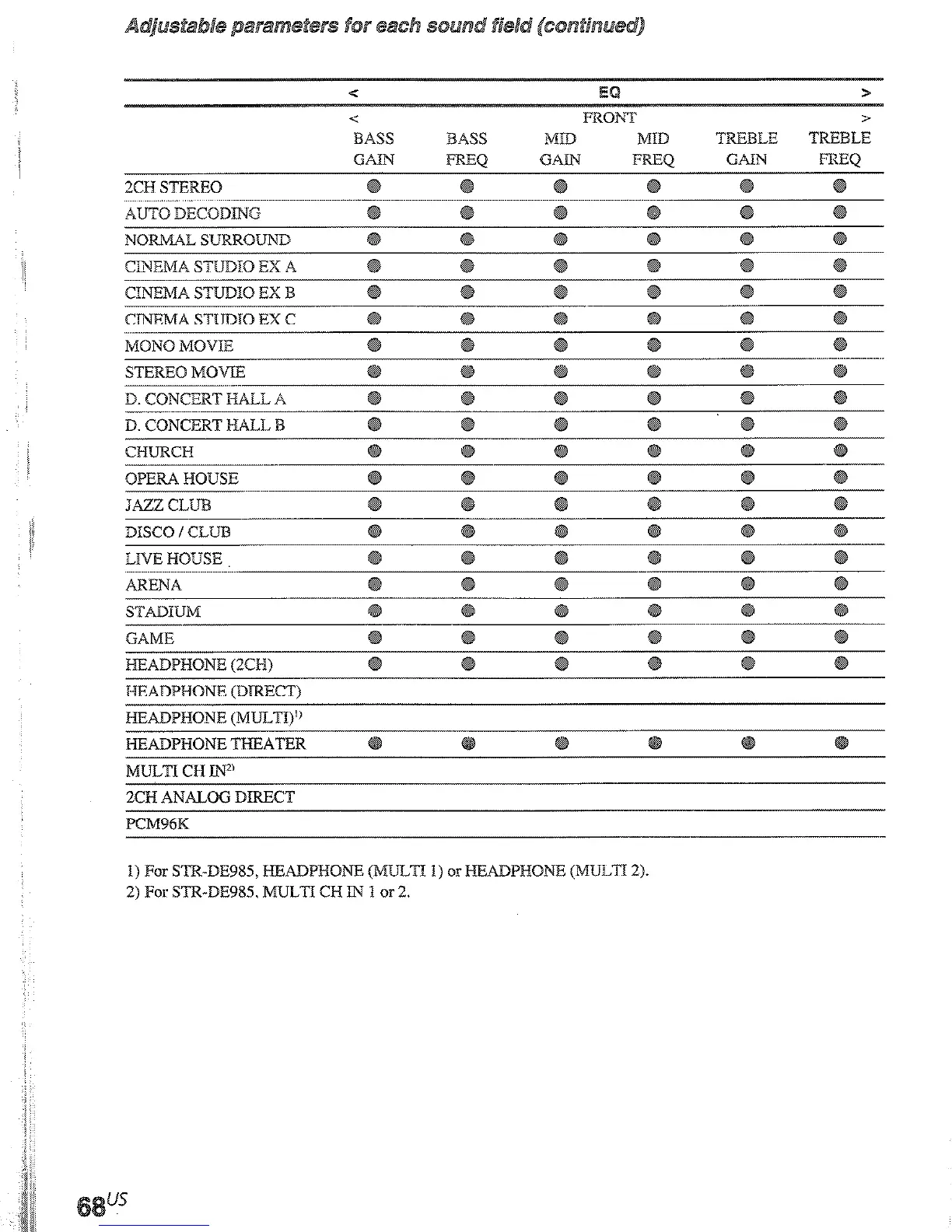 2) For STR-DE985, MULTI CH IN 1 or 2.