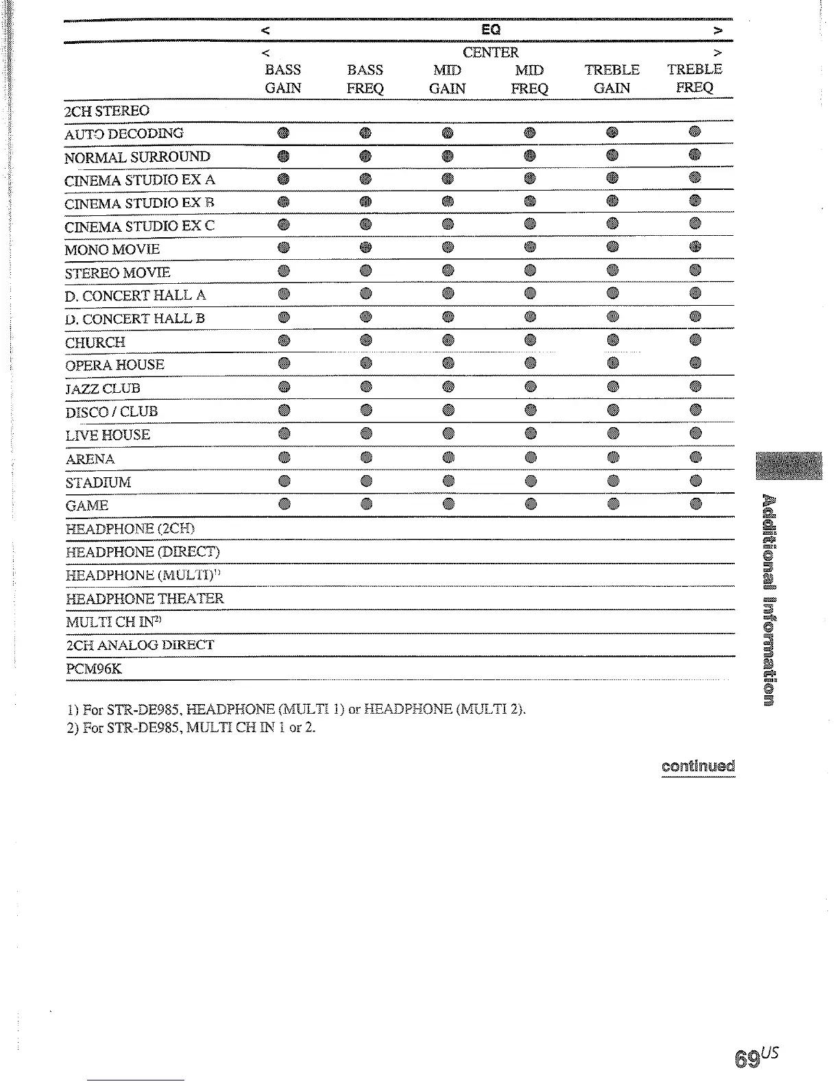 2) For STR-3x985, MULTI CA IN 1 or 2.