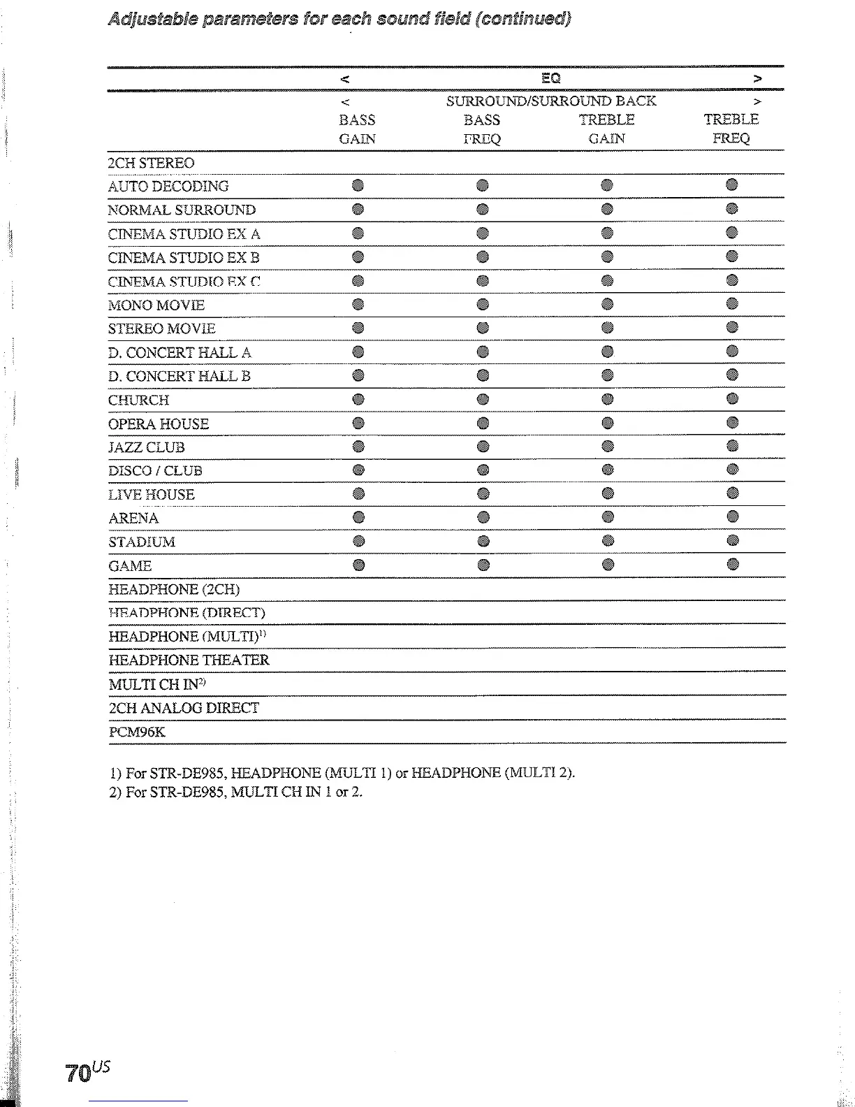 1) For STR-DE985, HEADPHONE W7JLTI 1) or HEADPHONE (MULTI 2).