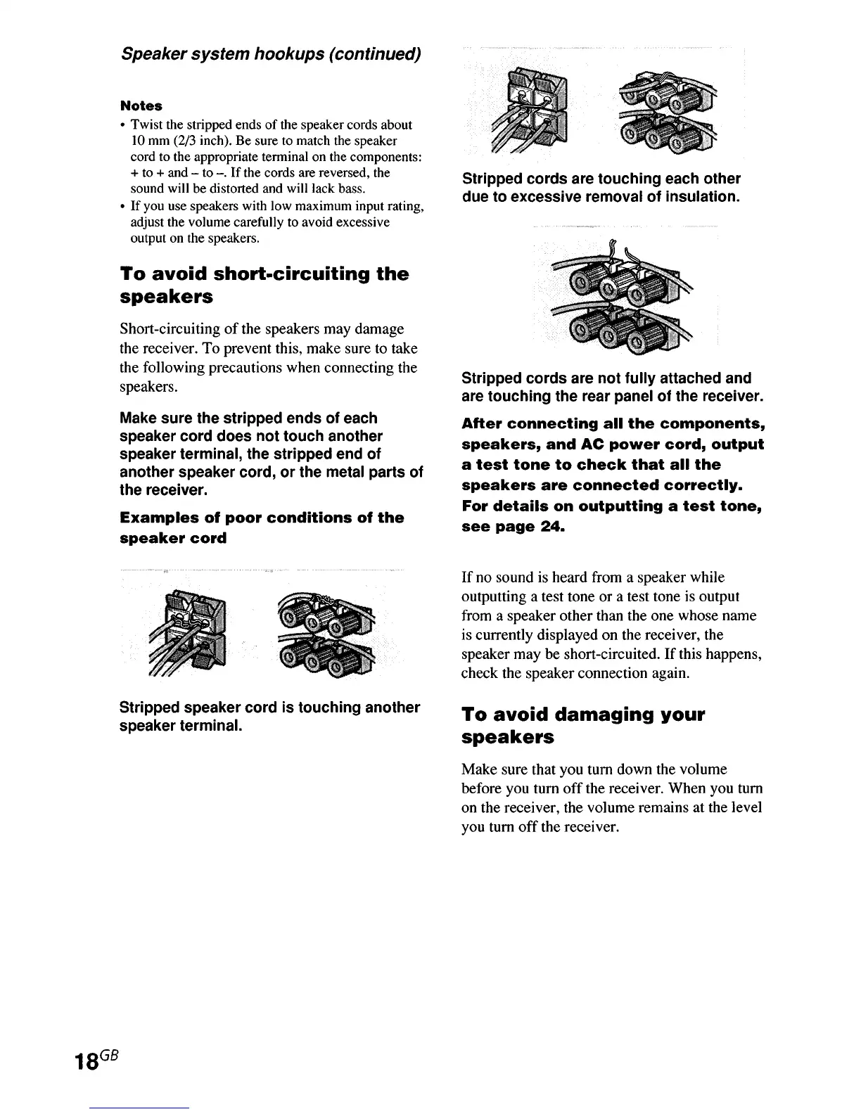 Sony STR-DE995 - To Avoid Short-Circuiting the Speakers; To Avoid Damaging Your Speakers