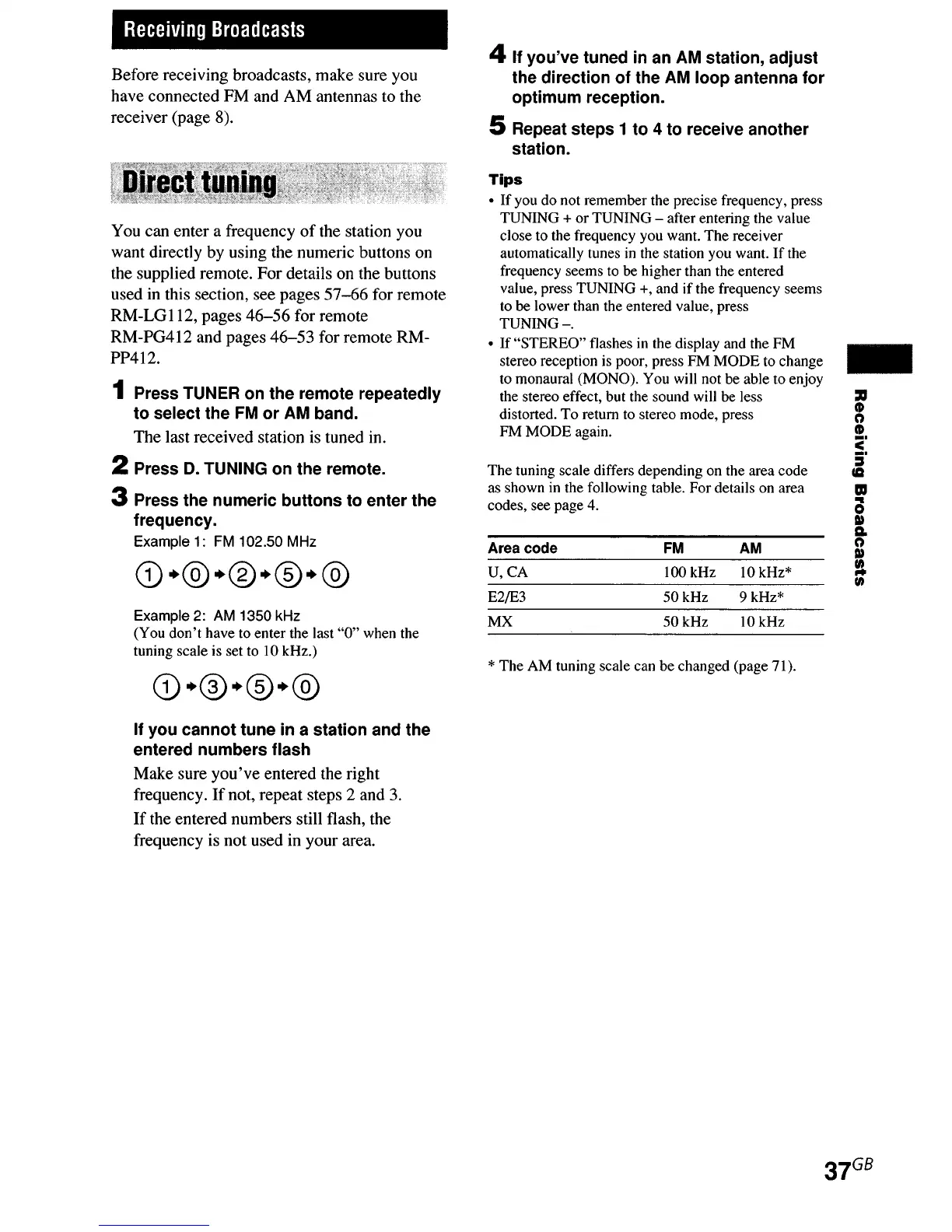 Sony STR-DE995 - Receiving Broadcasts; Direct Tuning for Radio Stations