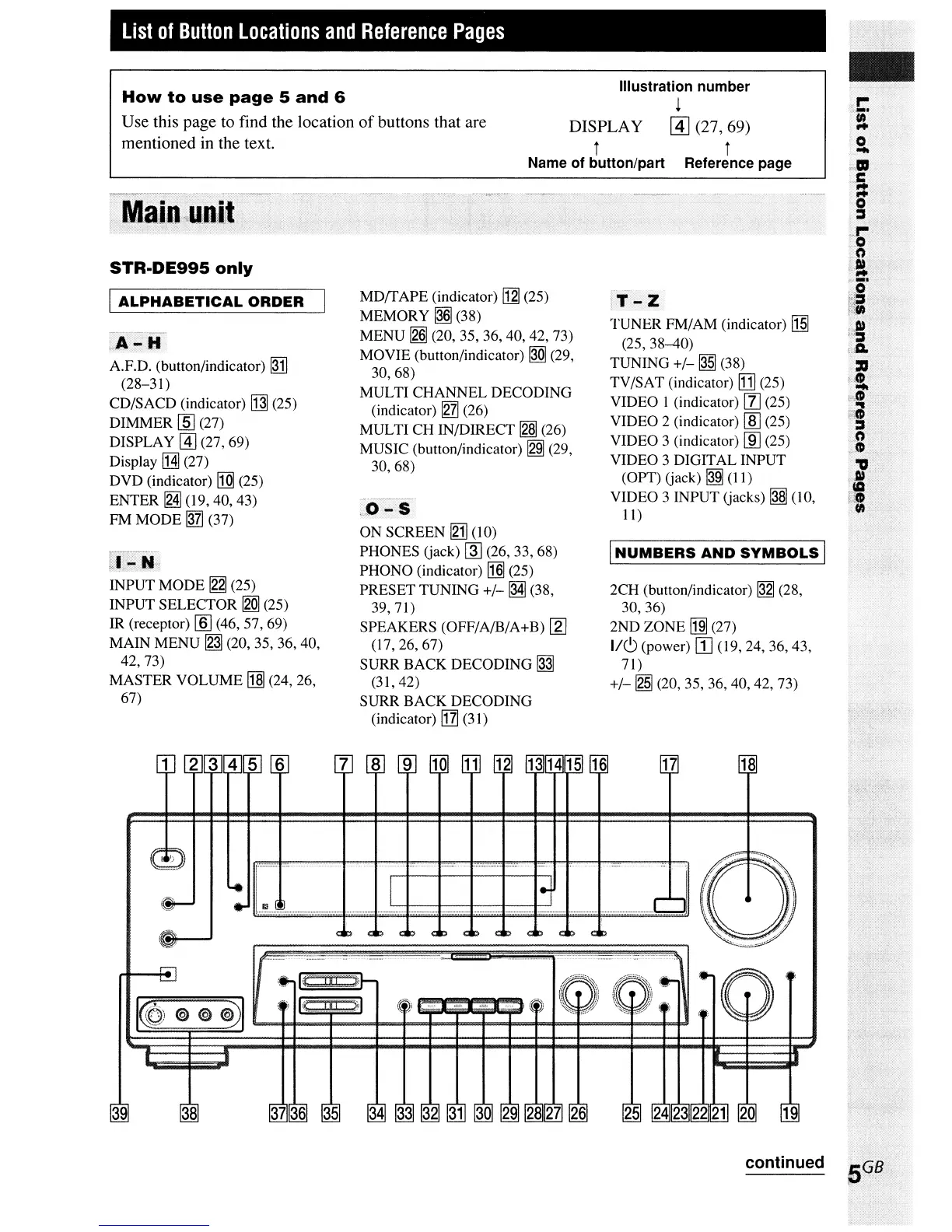 Sony STR-DE995 - Main Unit Button Locations; Main unit