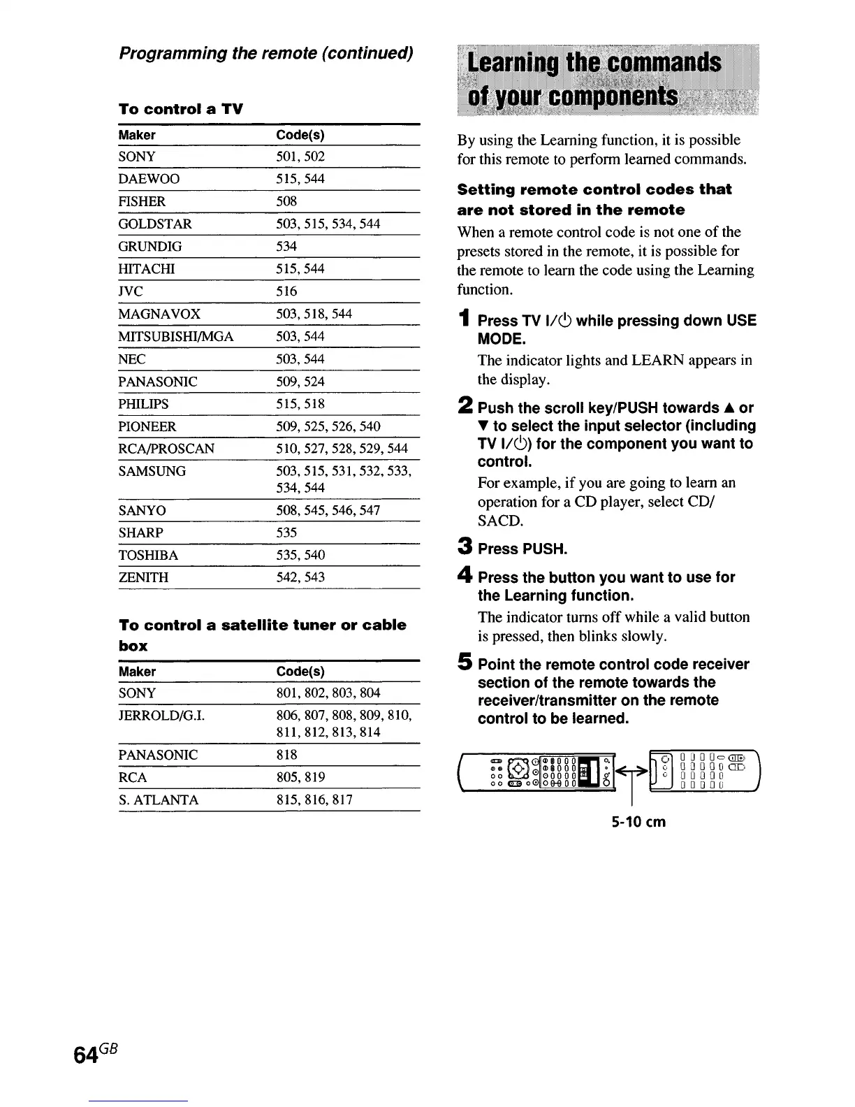 Sony STR-DE995 - Learning the commands of your components; Learning Remote Control Codes