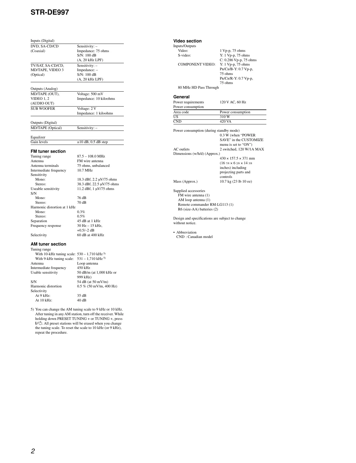 TV/SAT, SA-CD/CD, Sensitivity: –