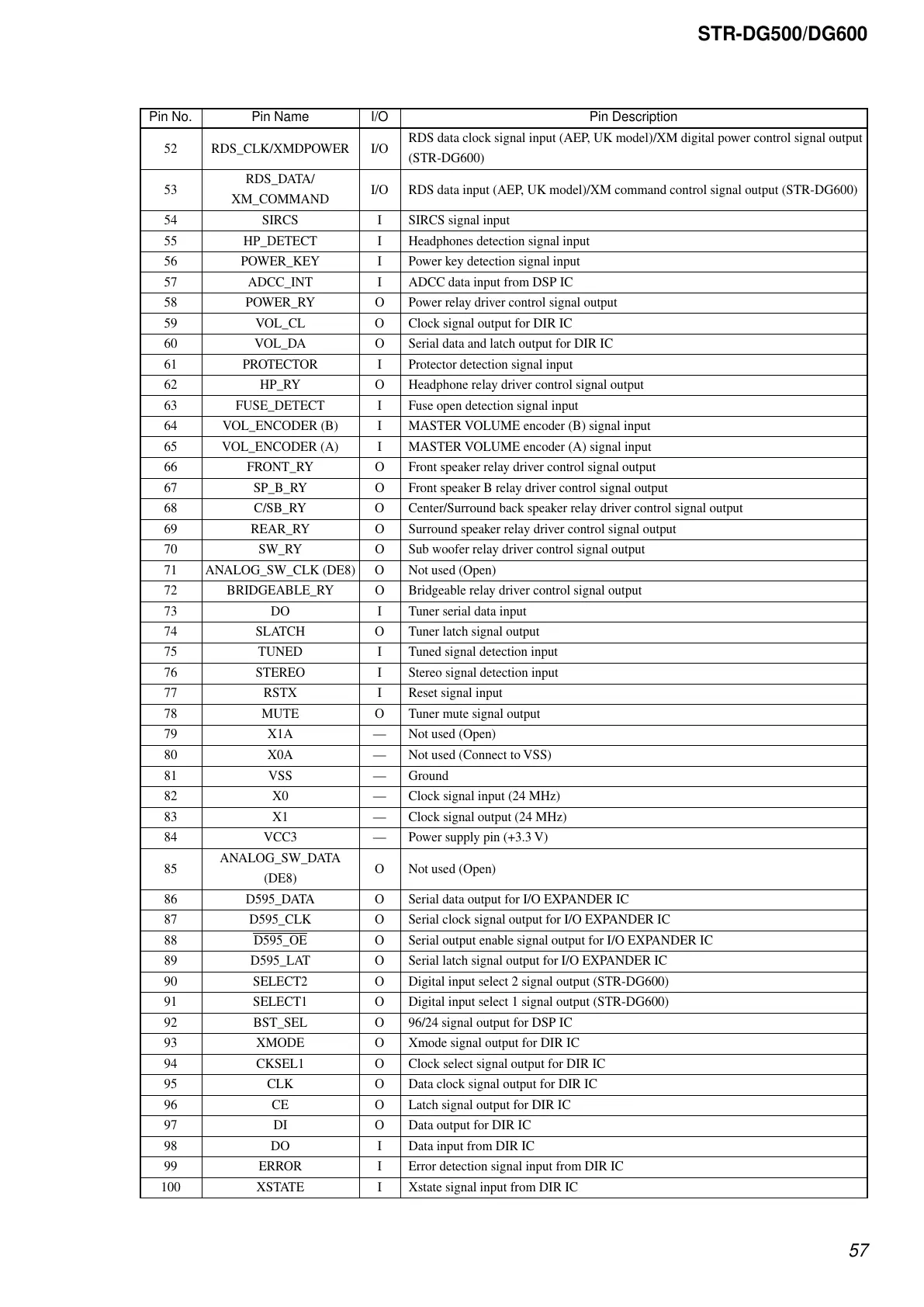 91 SELECT1 O Digital input select 1 signal output (STR-DG600)