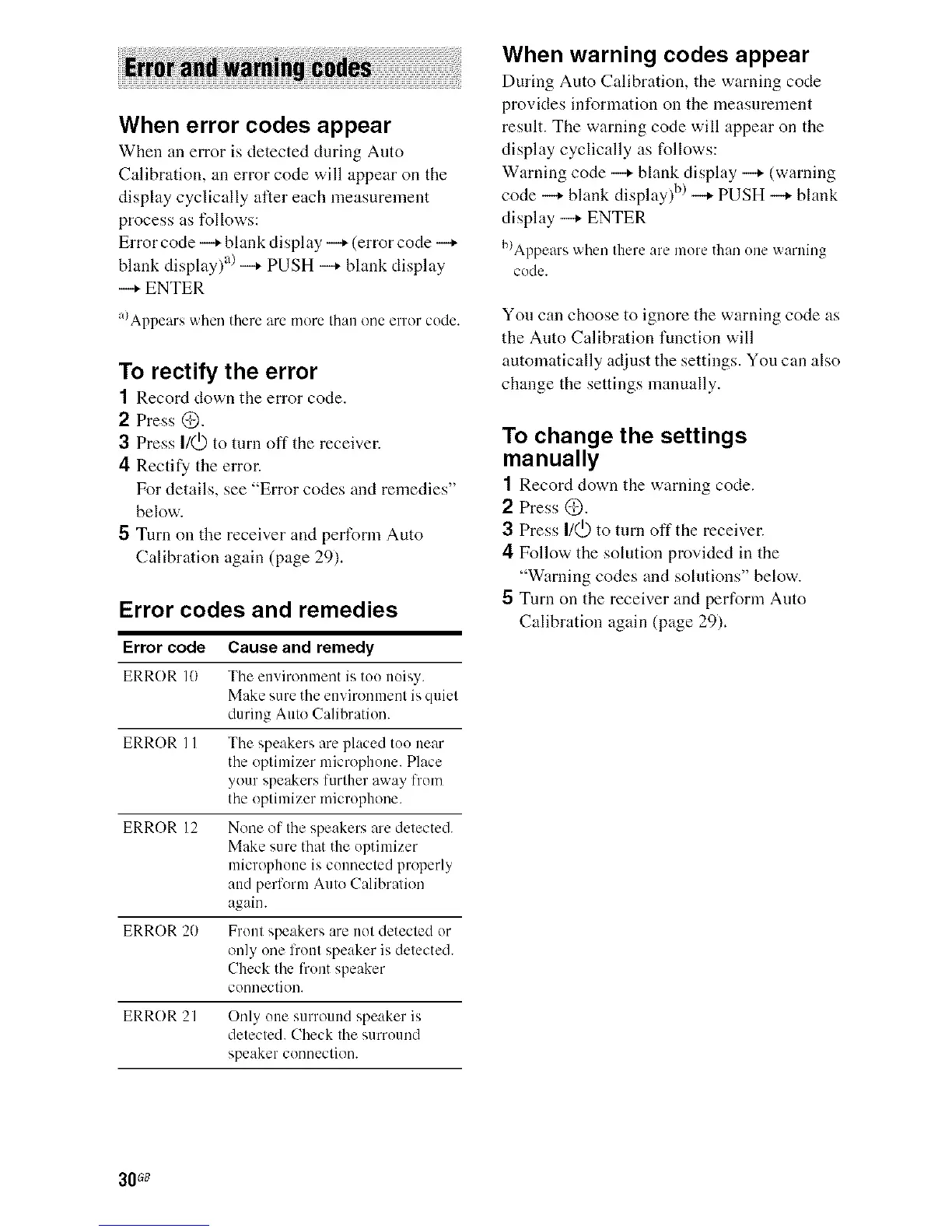 Error codes and remedies