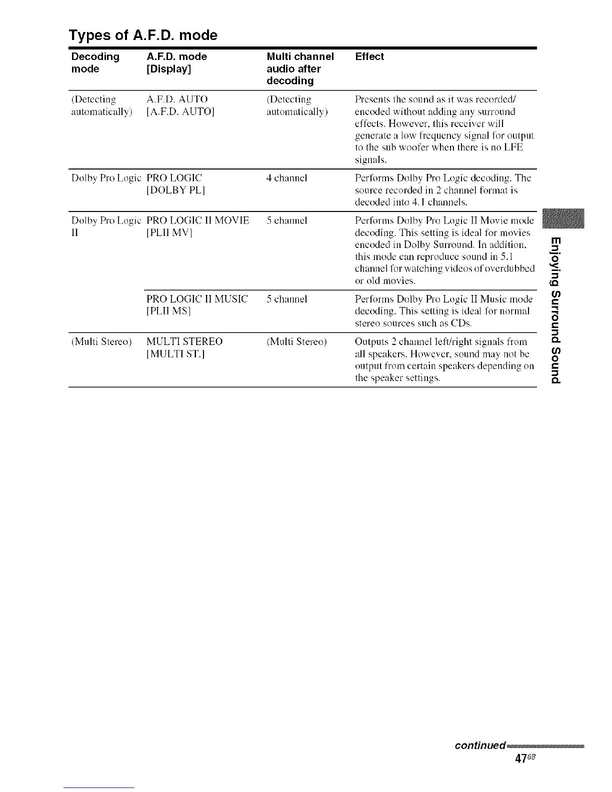 Decoding A.F.D. mode Multi channel Effect