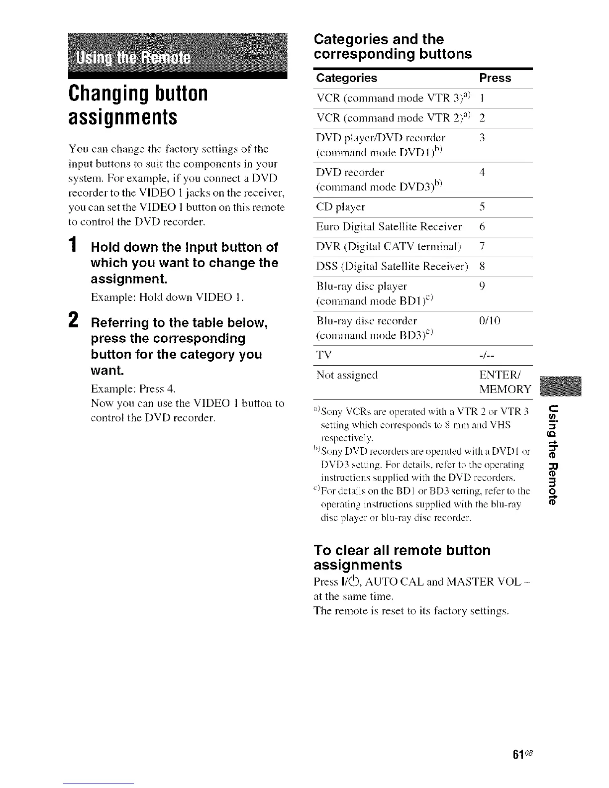 a/Sony VCRs are operaled wifll a VTR 2 or VTR 3 r'-