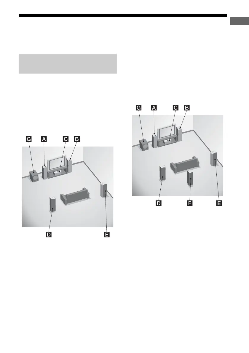front speakers, a center speaker, and two