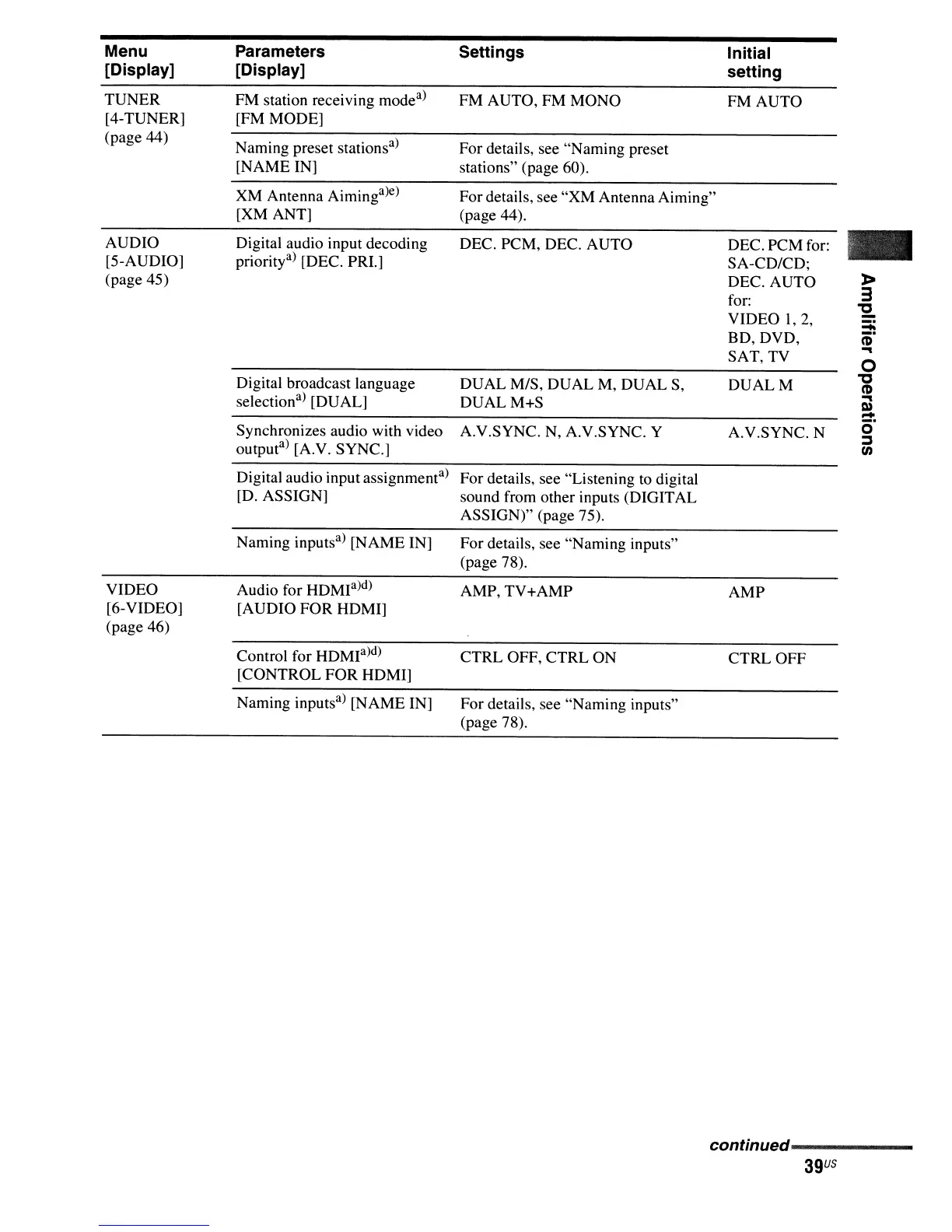 Synchronizes audio with video A.V.SYNC. N, A.V.SYNC. Y