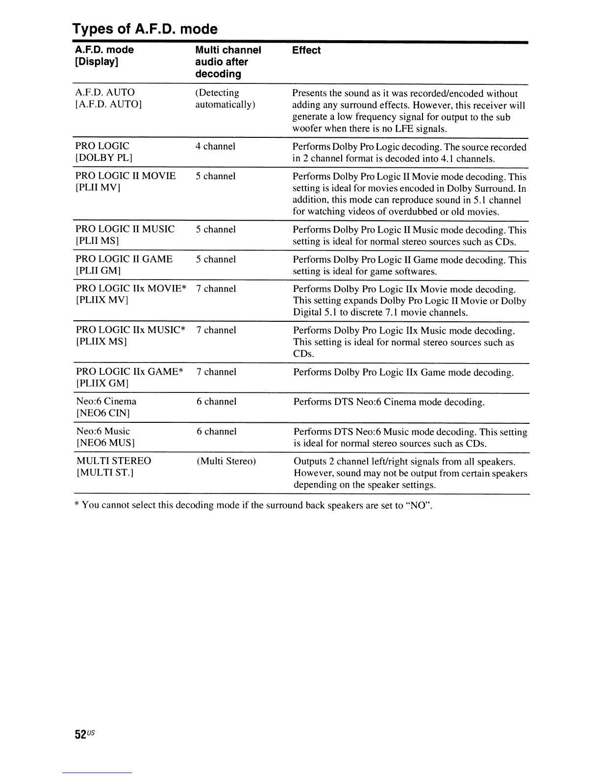 * You cannot select this decoding mode