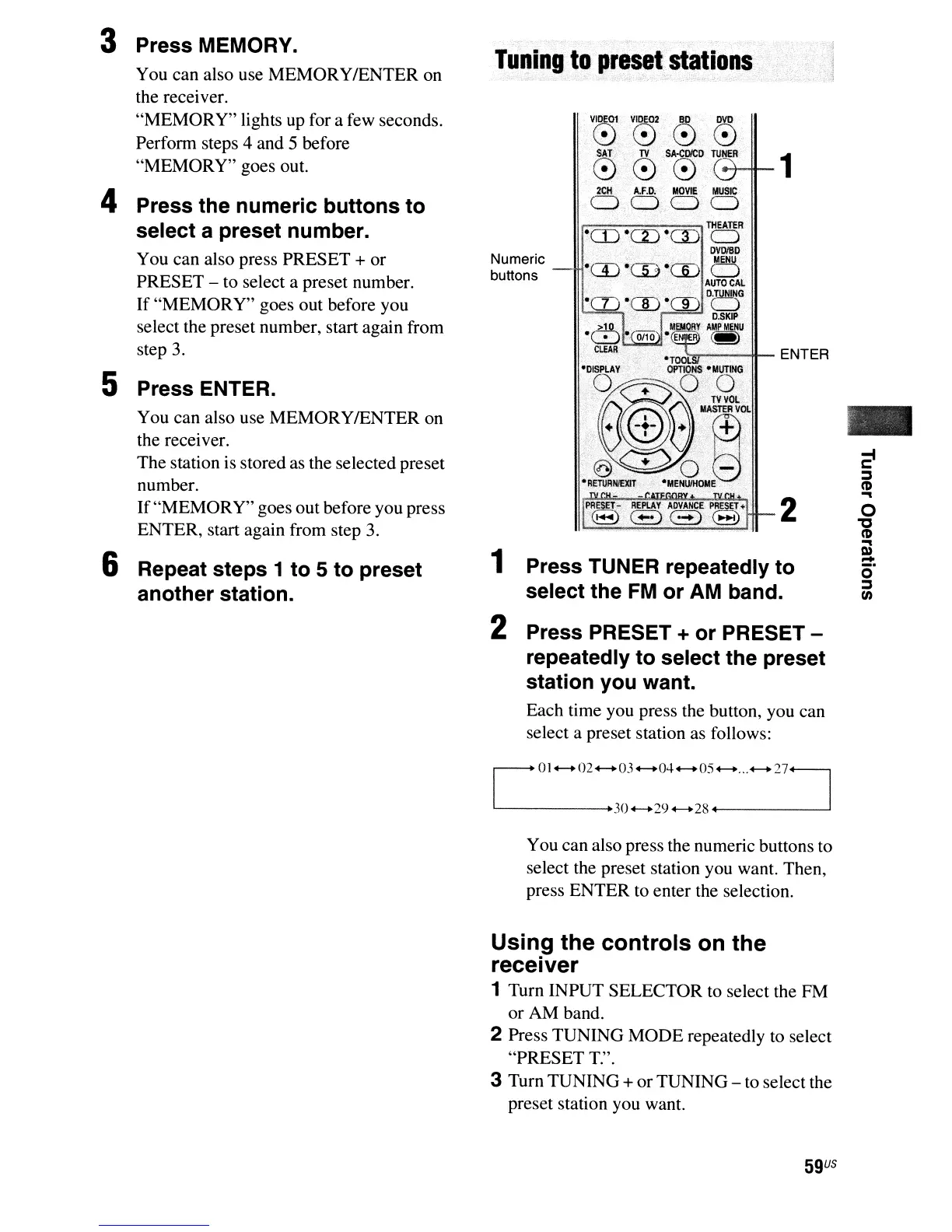 1 Press TUNER repeatedly to