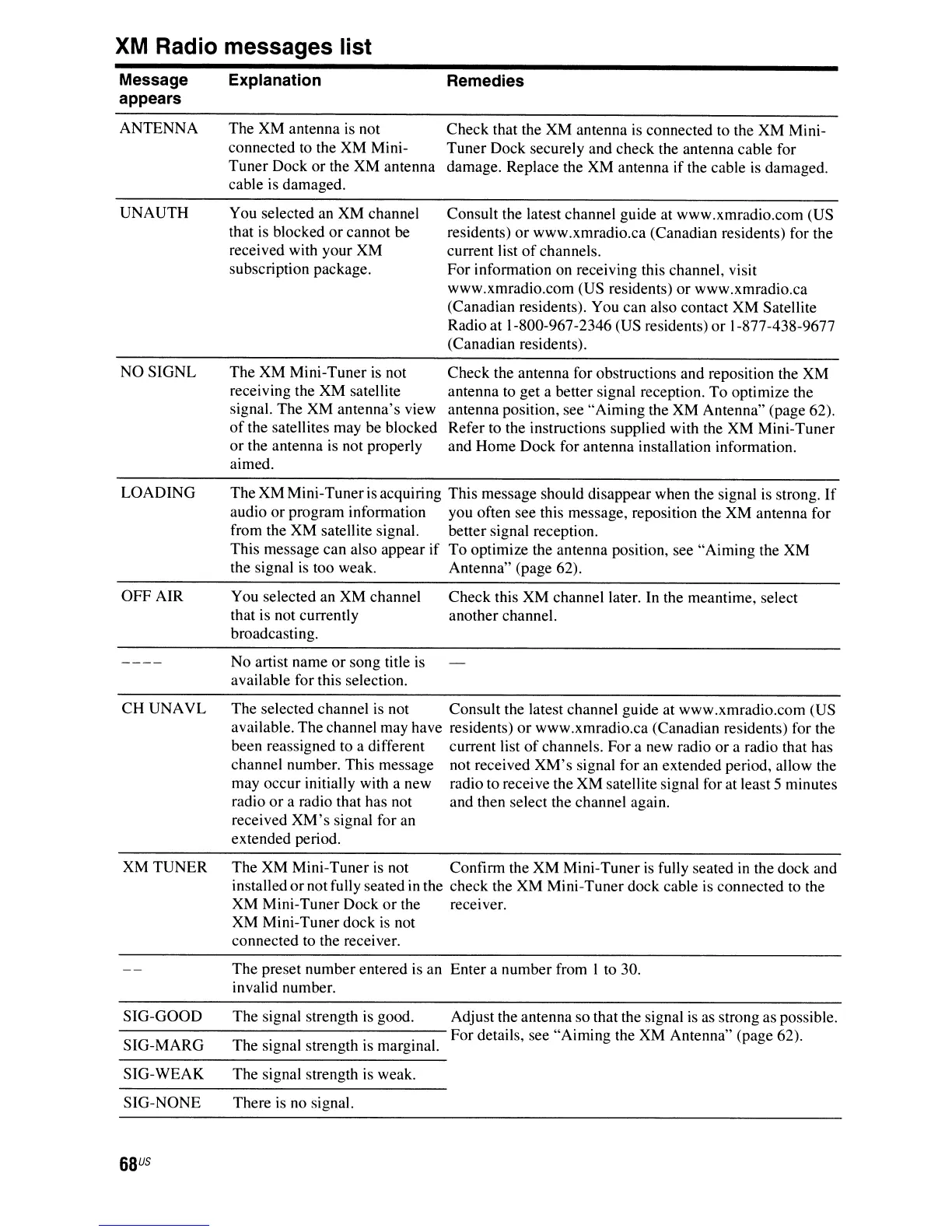 For details, see "Aiming the XM Antenna" (page 62).