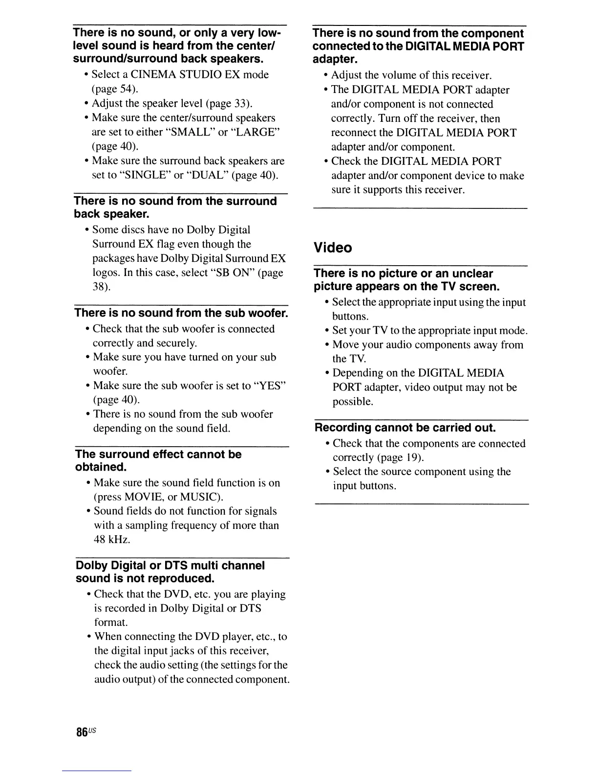 • Make sure the center/surround speakers