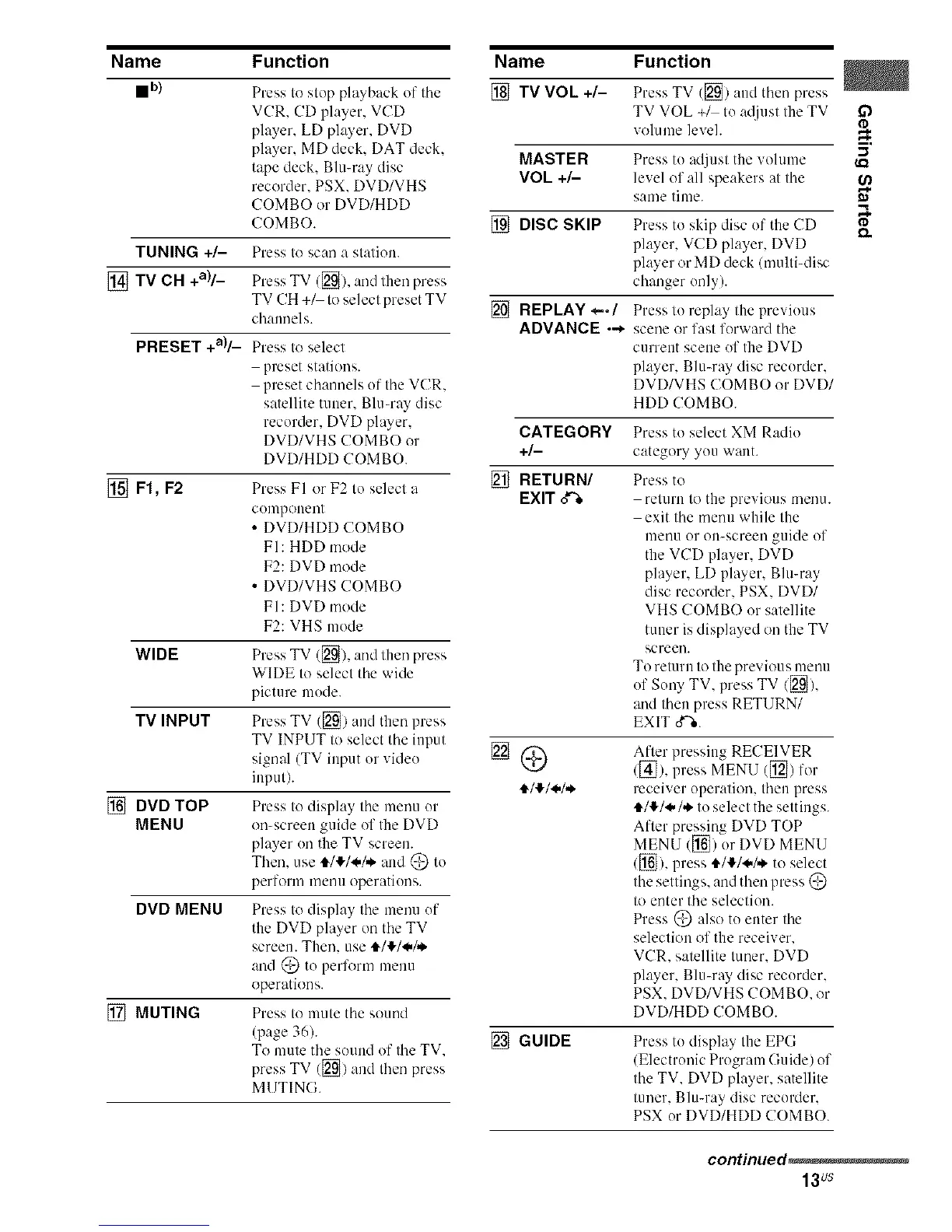 TV CH +_ to select preset TV