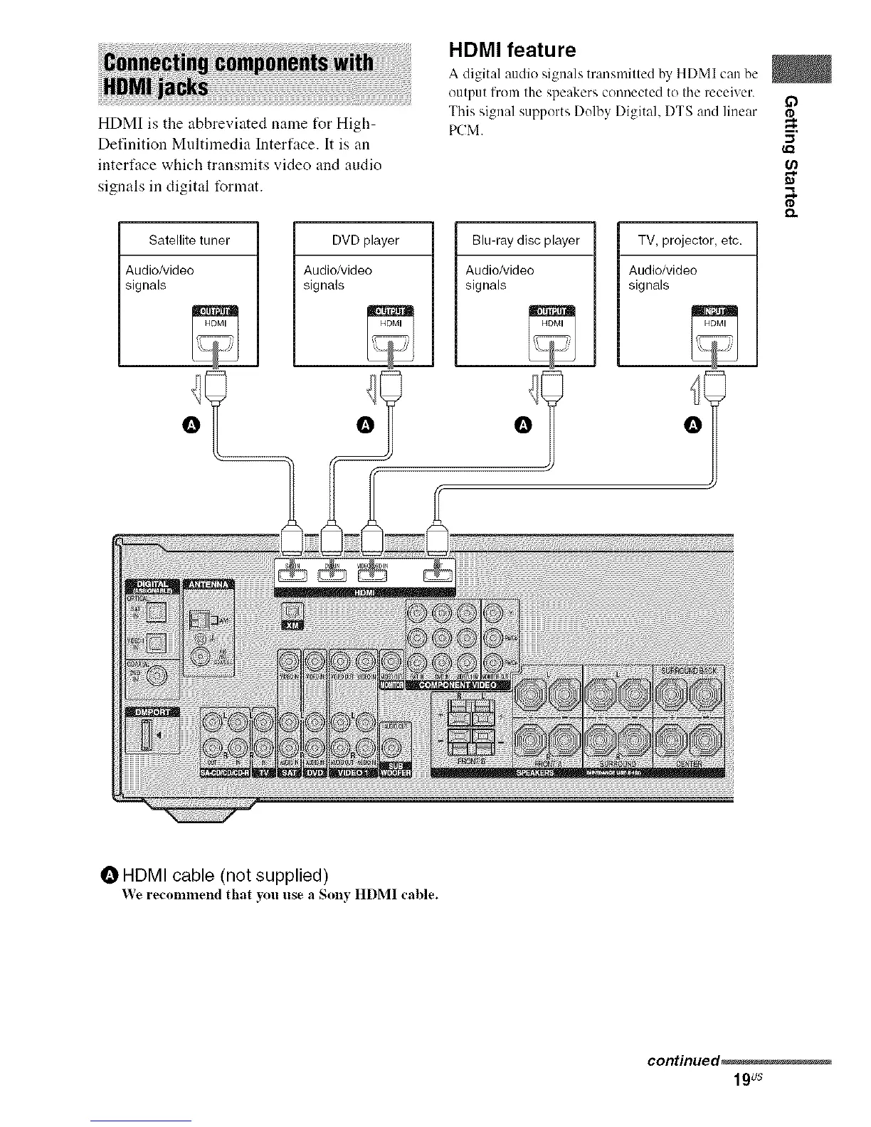 We recr)nllnend that yOl.I I.ise a Solly HDMI cable.