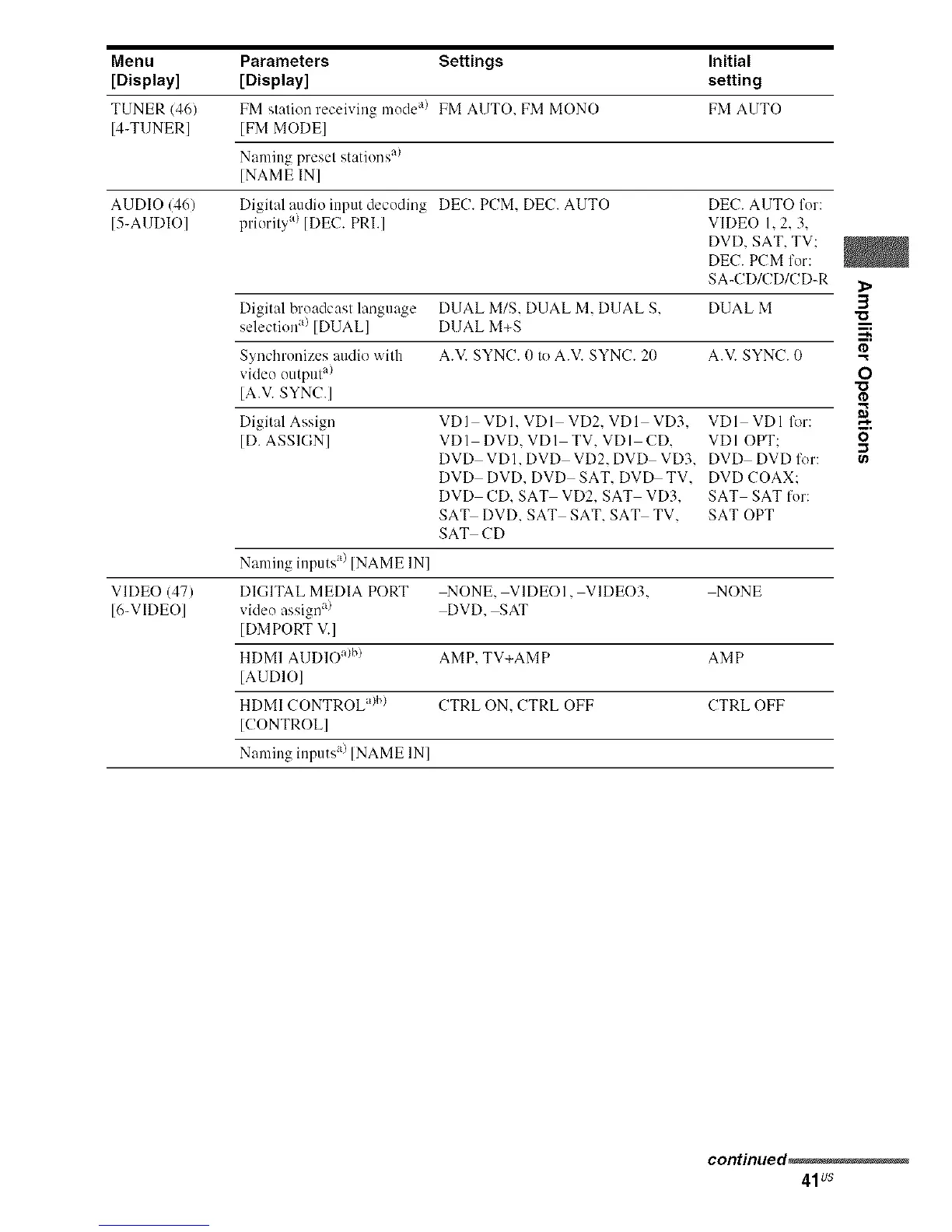 AUDIO (46) Digital audio input decoding DEC. PCM. DEC. AUTO DEC. AUTO for: