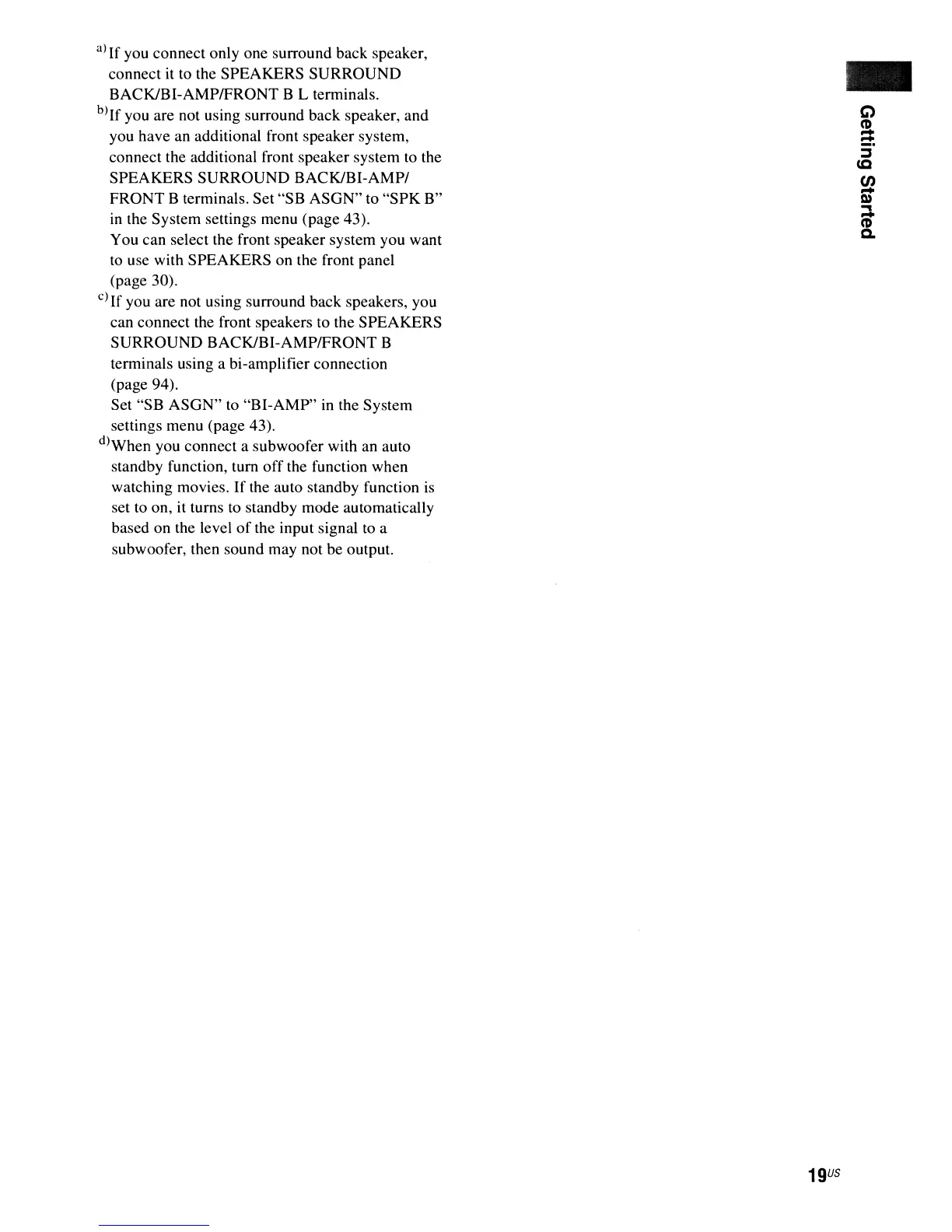 FRONT B terminals. Set"SB ASGN" to "SPK B"