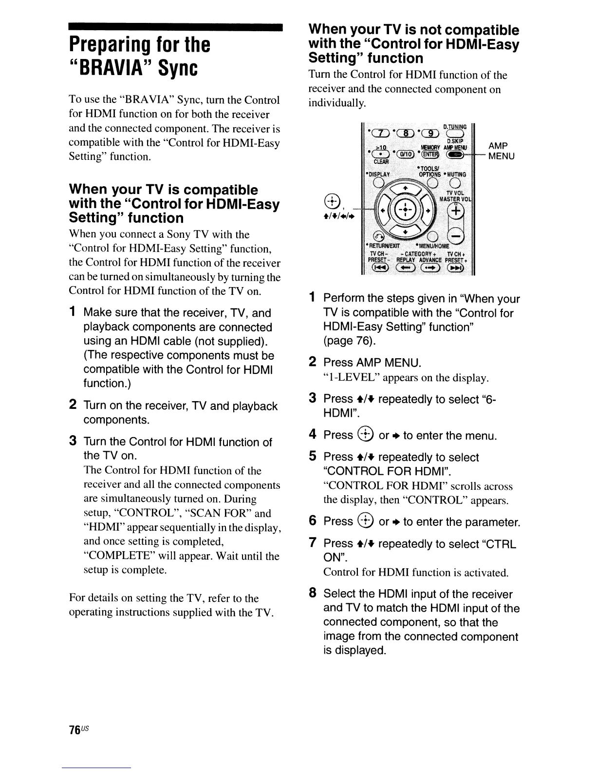 To use the "BRAVIA" Sync, tum the Control