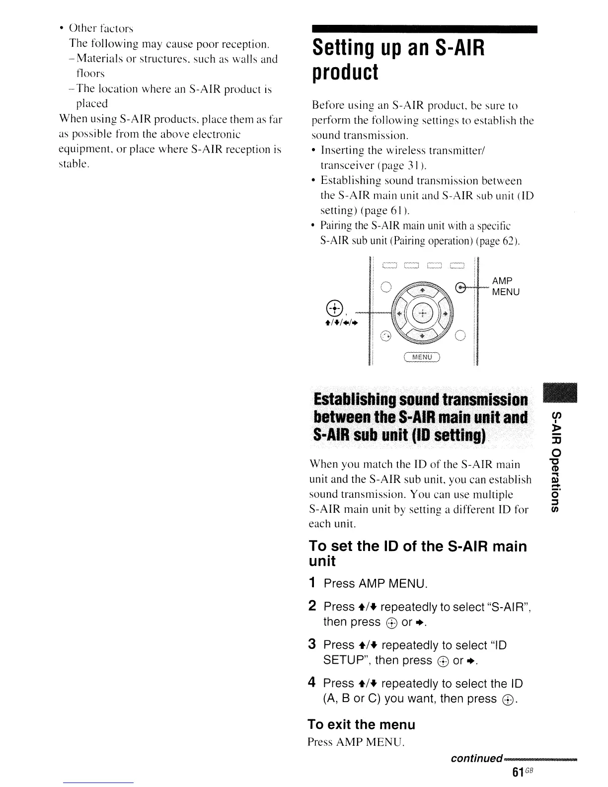 unit and the S-AIR sub unit, you can establish