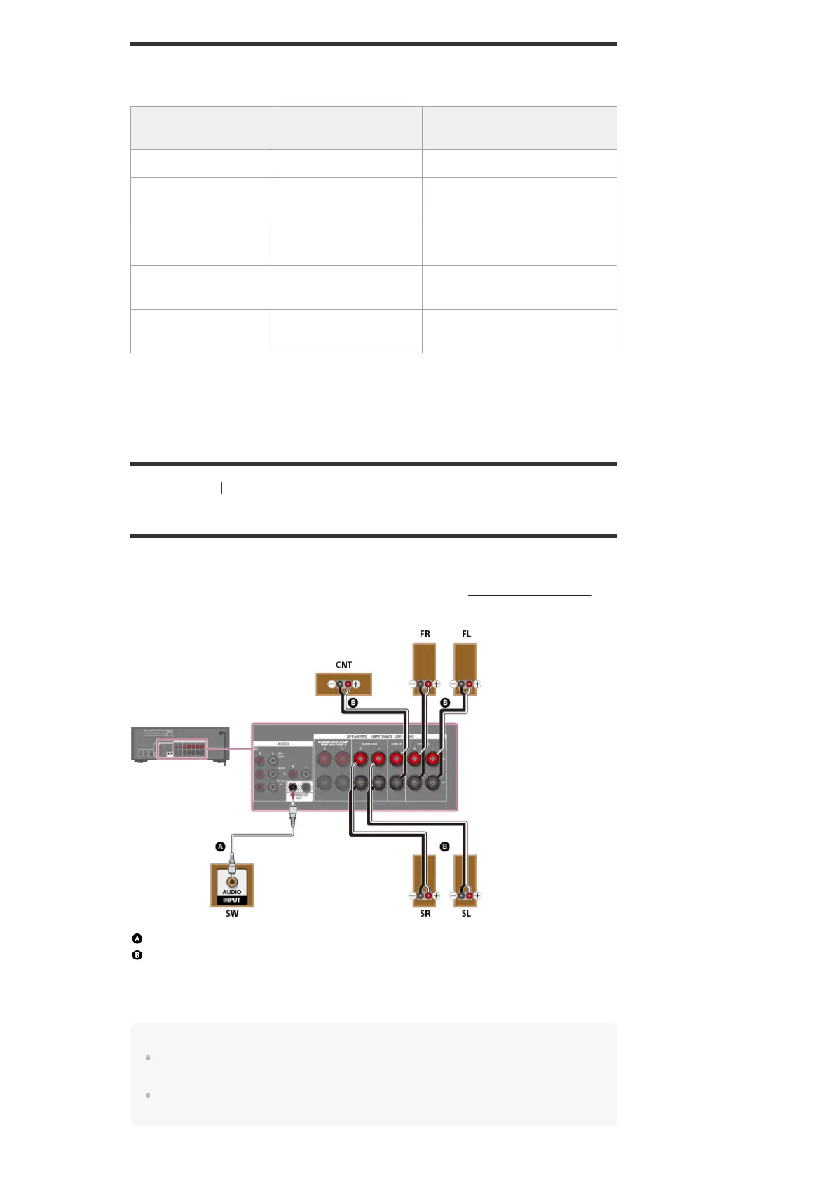 For details on how to connect speaker cables to the receiver, see “How to connect speaker