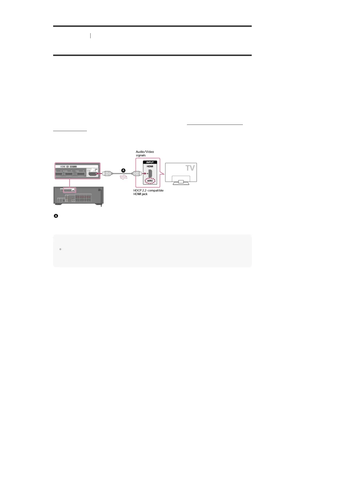 receiver to the HDCP 2.2-compatible HDMI jack on the TV using a High Speed HDMI Cable