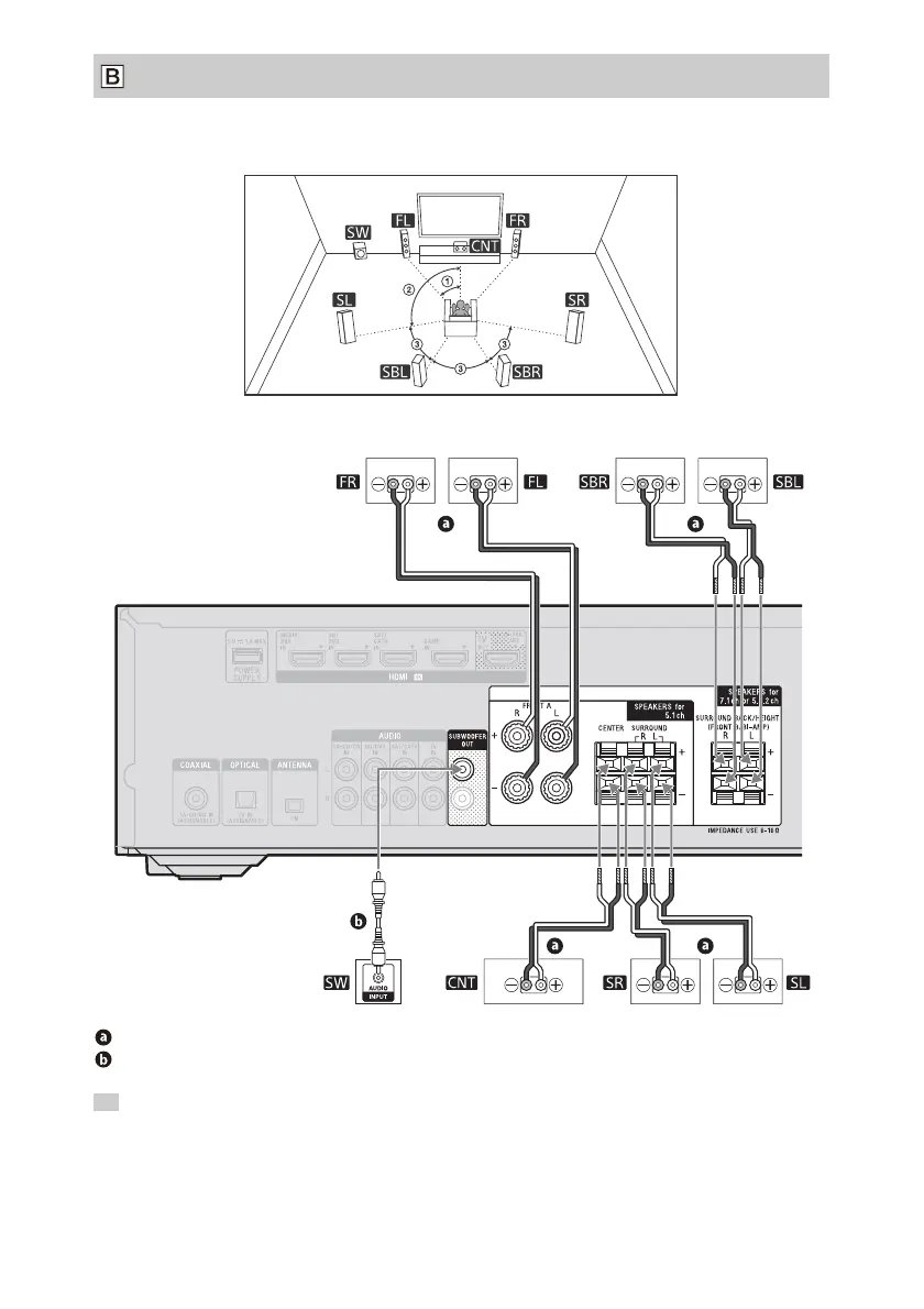 If you connect only one surround back speaker, place it directly behind the listening position and connect