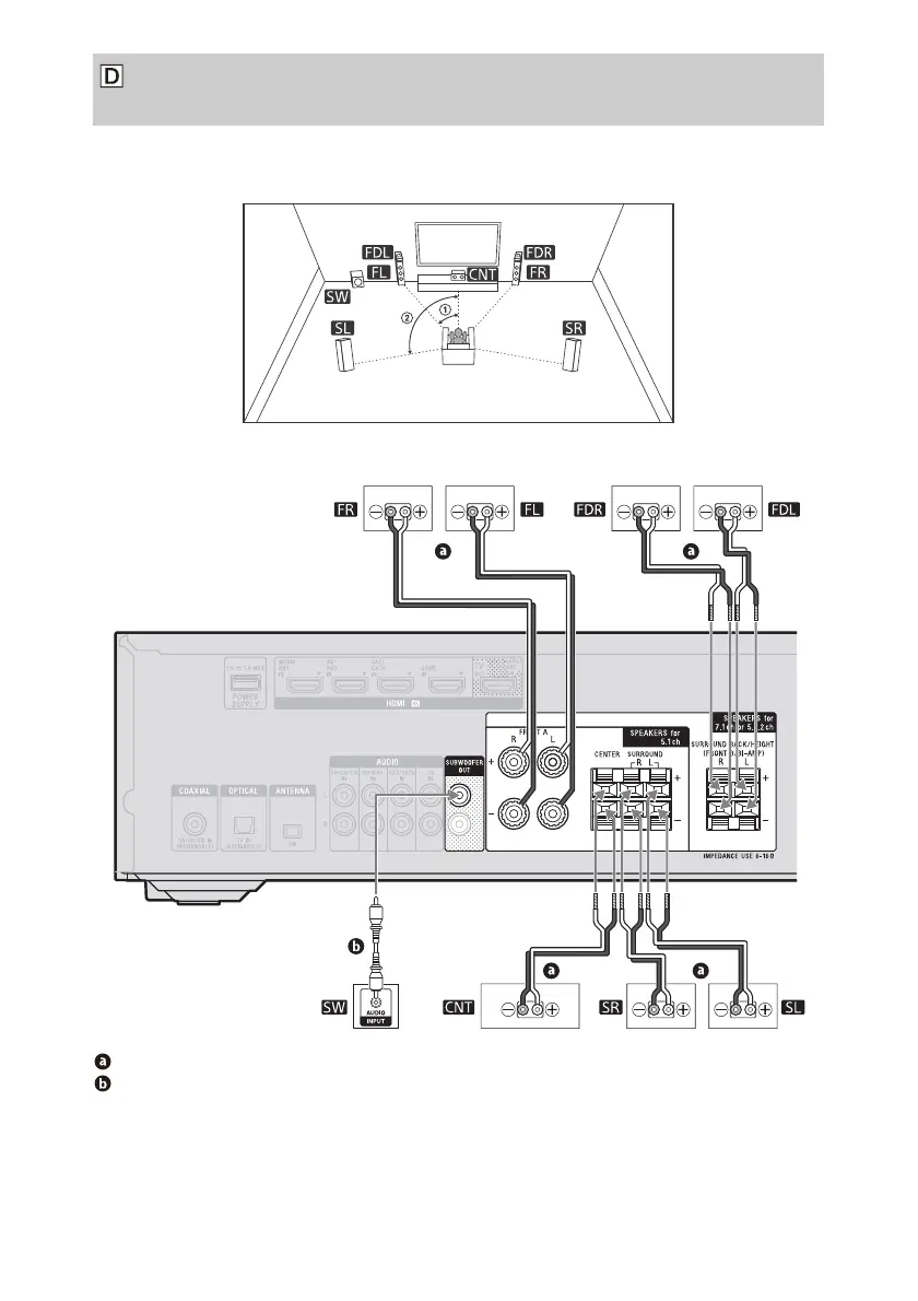 You can enjoy vertical sound effects by connecting additional two front Dolby Atmos