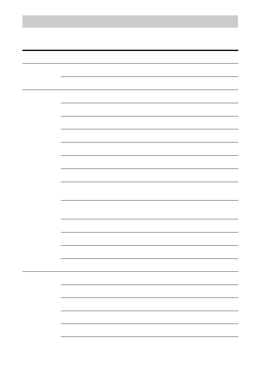 The following options are available in each menu. For details on navigating through menus, see