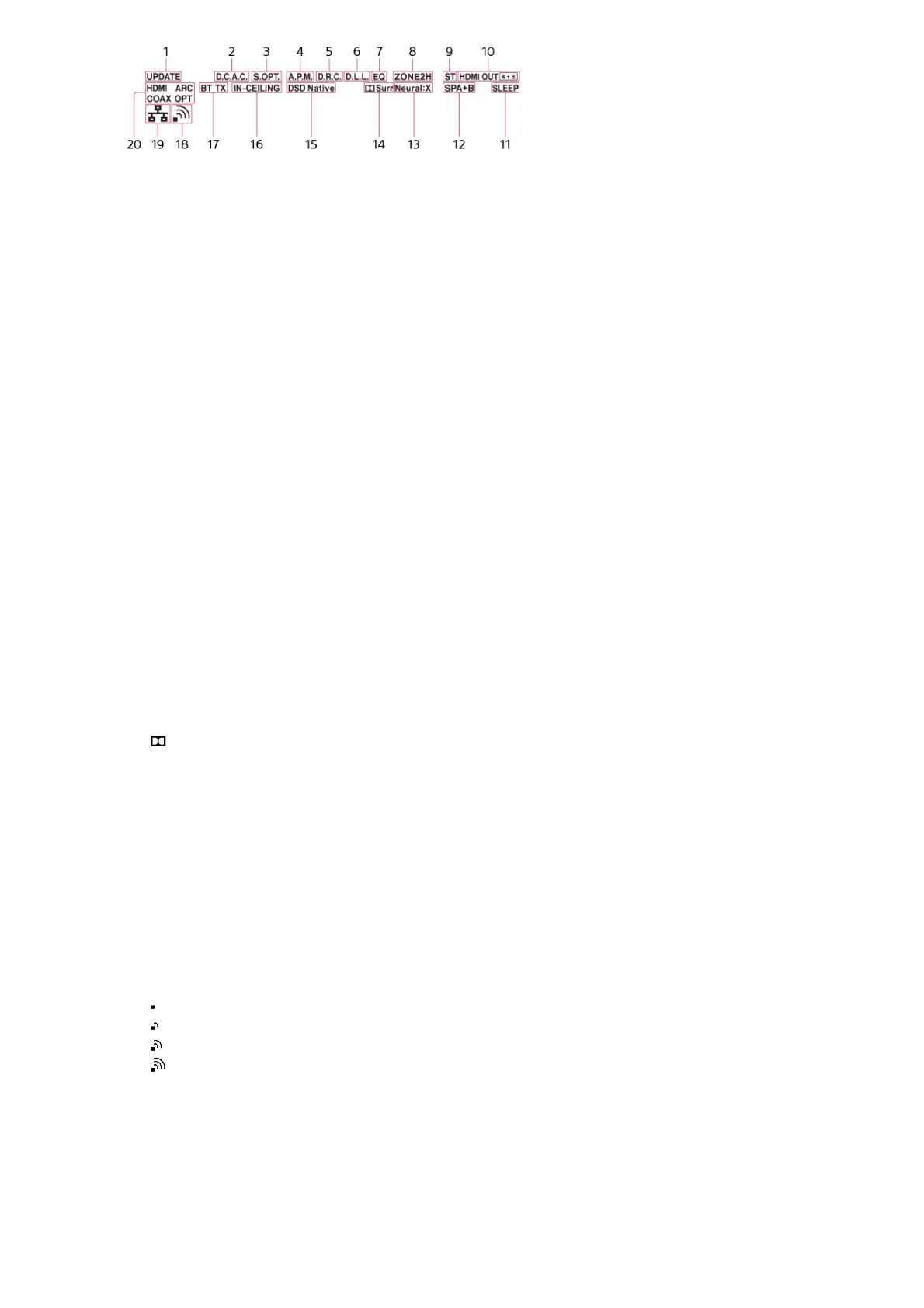 [ZONE2] lights up when the power for Zone 2 is on. [ZONE H] lights up when the power for