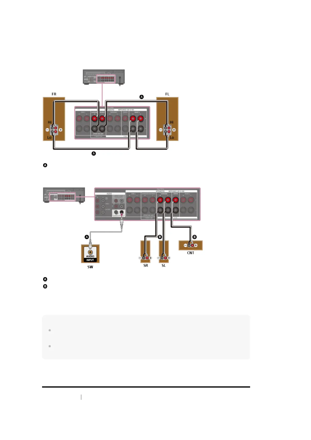 Connect the jacks on the Lo (or Hi) side of the front speakers to the SPEAKERS FRONT A