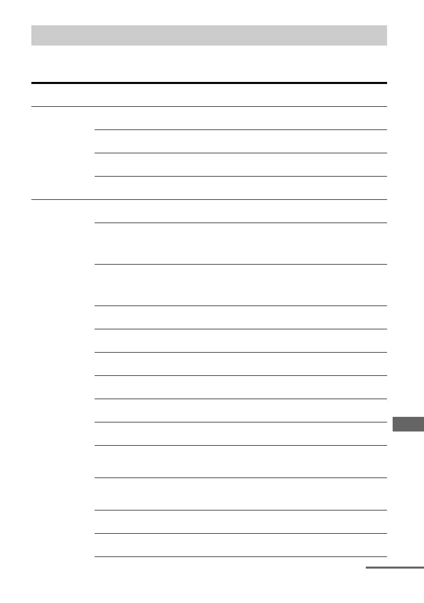 The following options are available in each menu. For details on navigating through menus, see