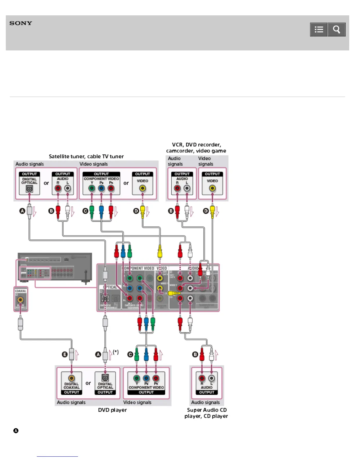 Connect devices to the receiver as illustrated below.