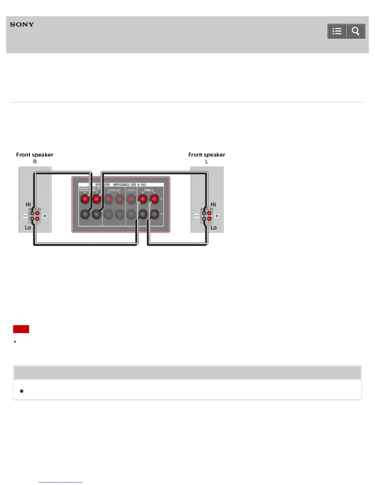 jacks on the Hi (or Lo) side of the front speakers to the SPEAKERS SURROUND BACK/BI-AMP/FRONT HIGH/FRONT
