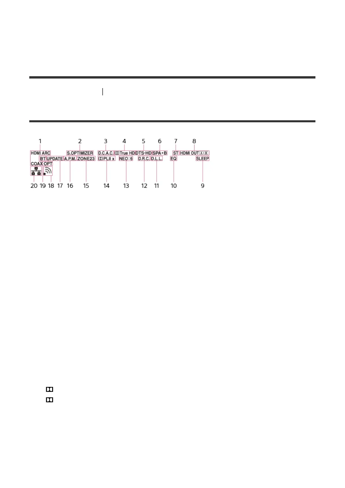 The applicable indicator lights up when the receiver is decoding the corresponding DTS