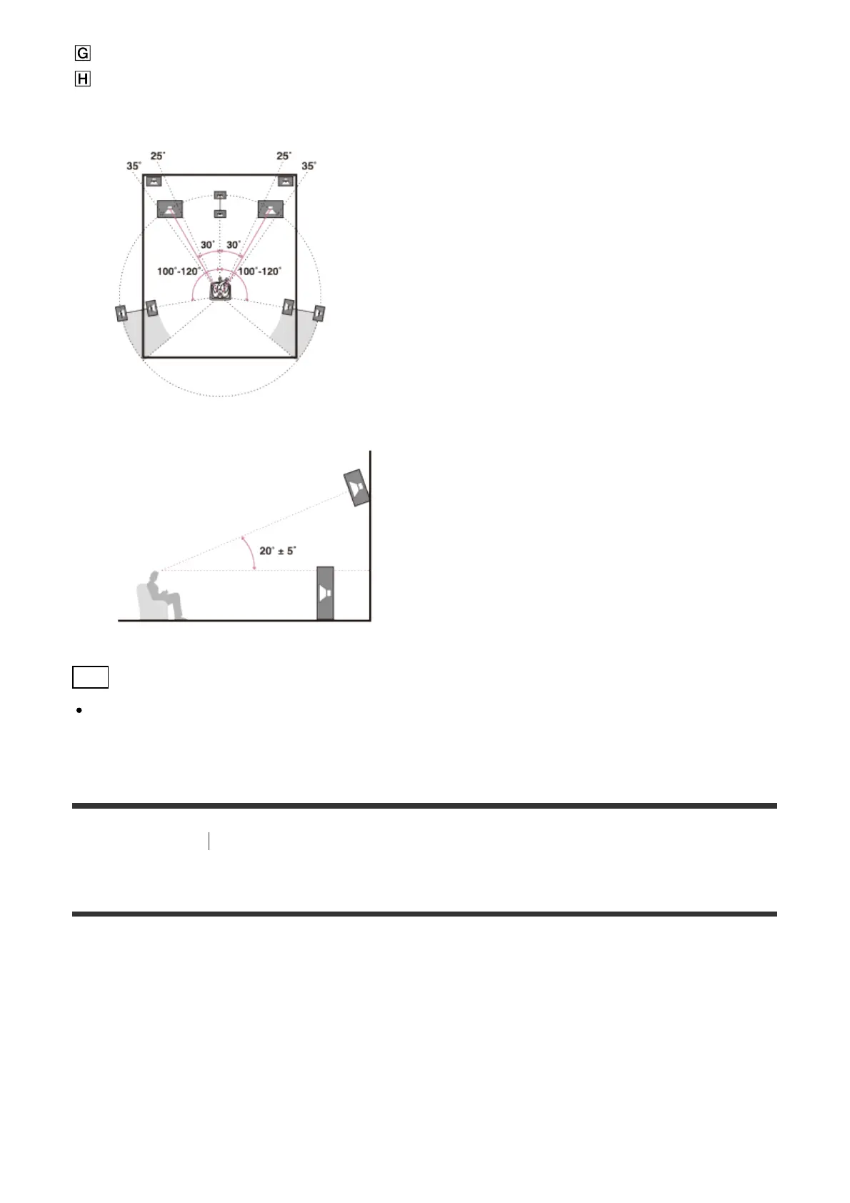 2. Place the front high speakers at height angle of 20° ± 5°.