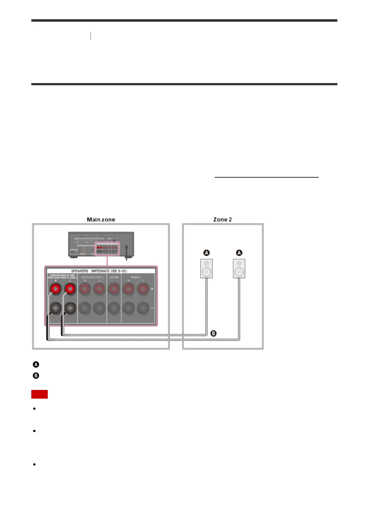 When using this Zone 2 connection, you need to set up the SPEAKERS SURROUND